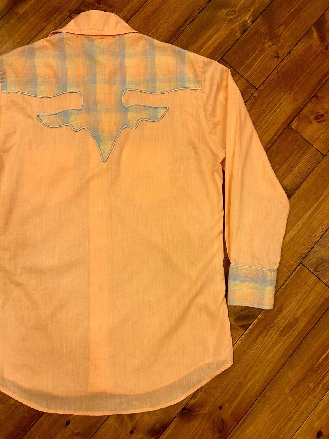 パステルカラーのピンクとチェックがかわいいウエスタンシャツです。メンズ合わせですが、男女問わずおすすめです。薄手で柔らかい生地ですので、冷房よけにも使えそうです。