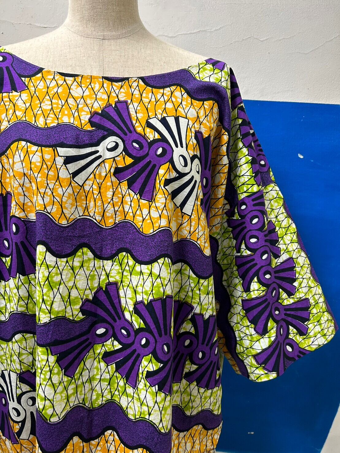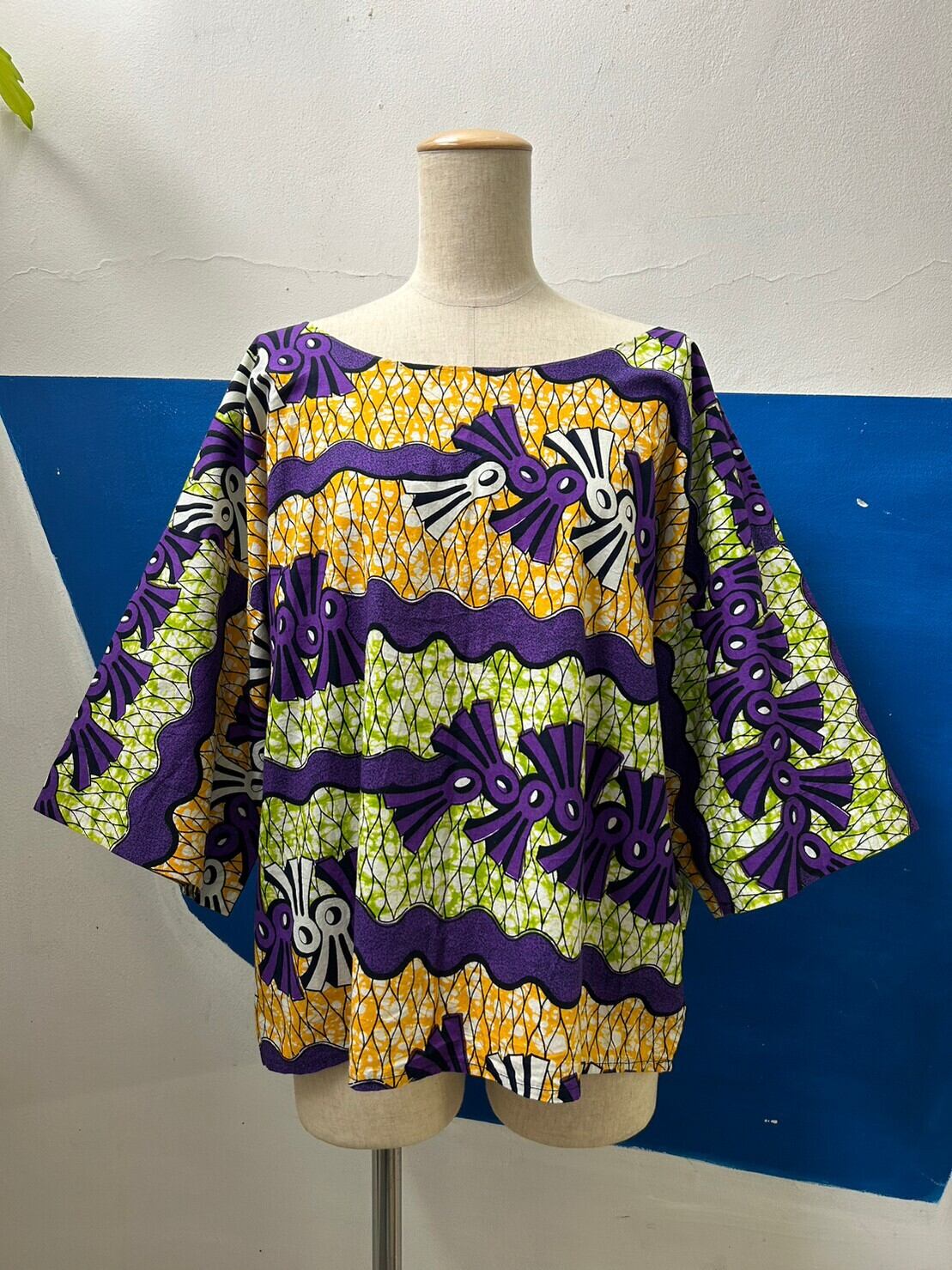非常にシンプルな仕立てのプルオーバートップスです。襟ぐりが大きいのでタンクトップやワンピースとの重ね着も楽しめそうです。