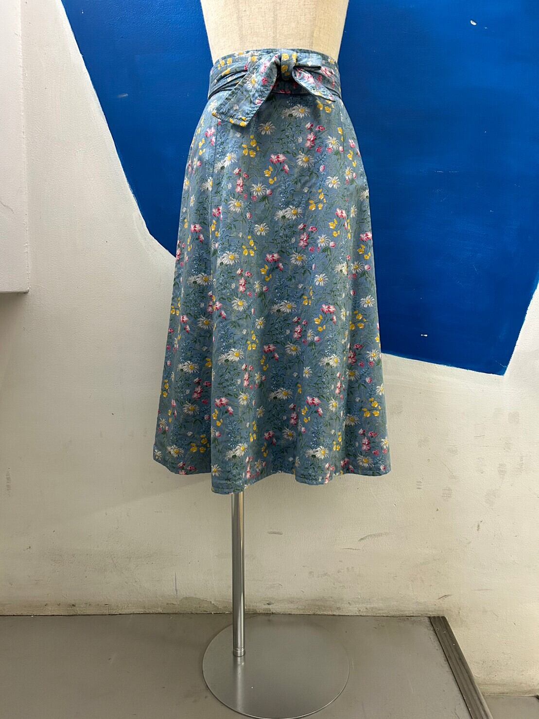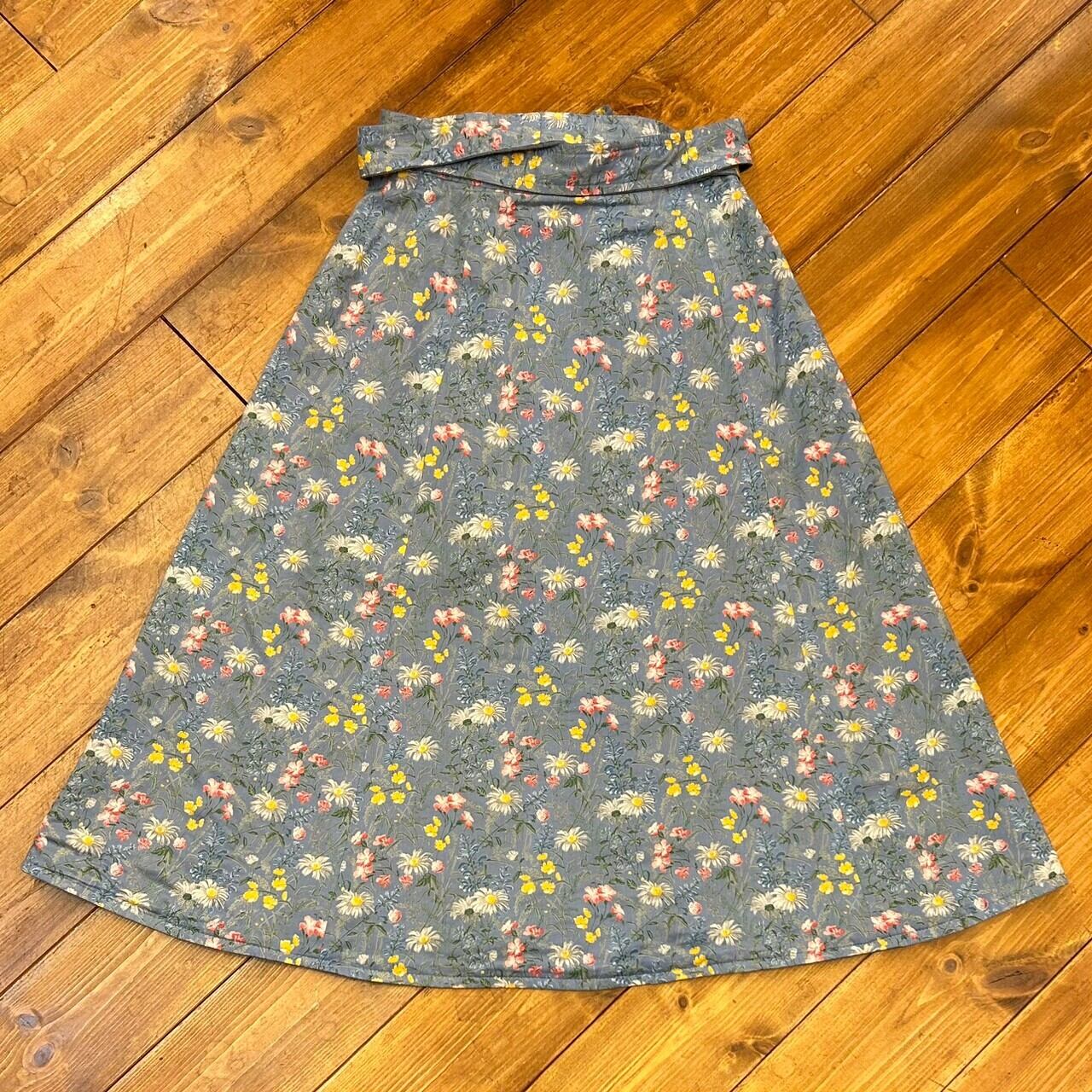 無地と小花柄のリバーシブルで使えるラップスカートです!