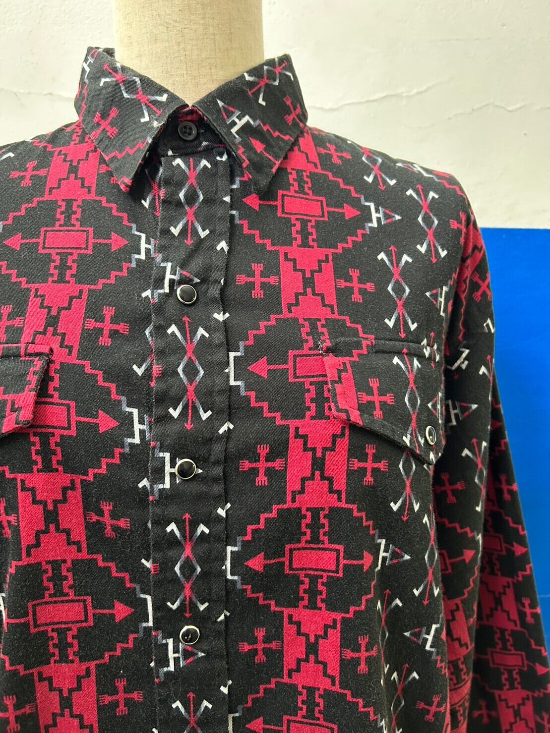 モダンでかっこいい柄のウエスタンシャツです。カラーも黒赤でかっこいいですね。男女問わずおすすめです!