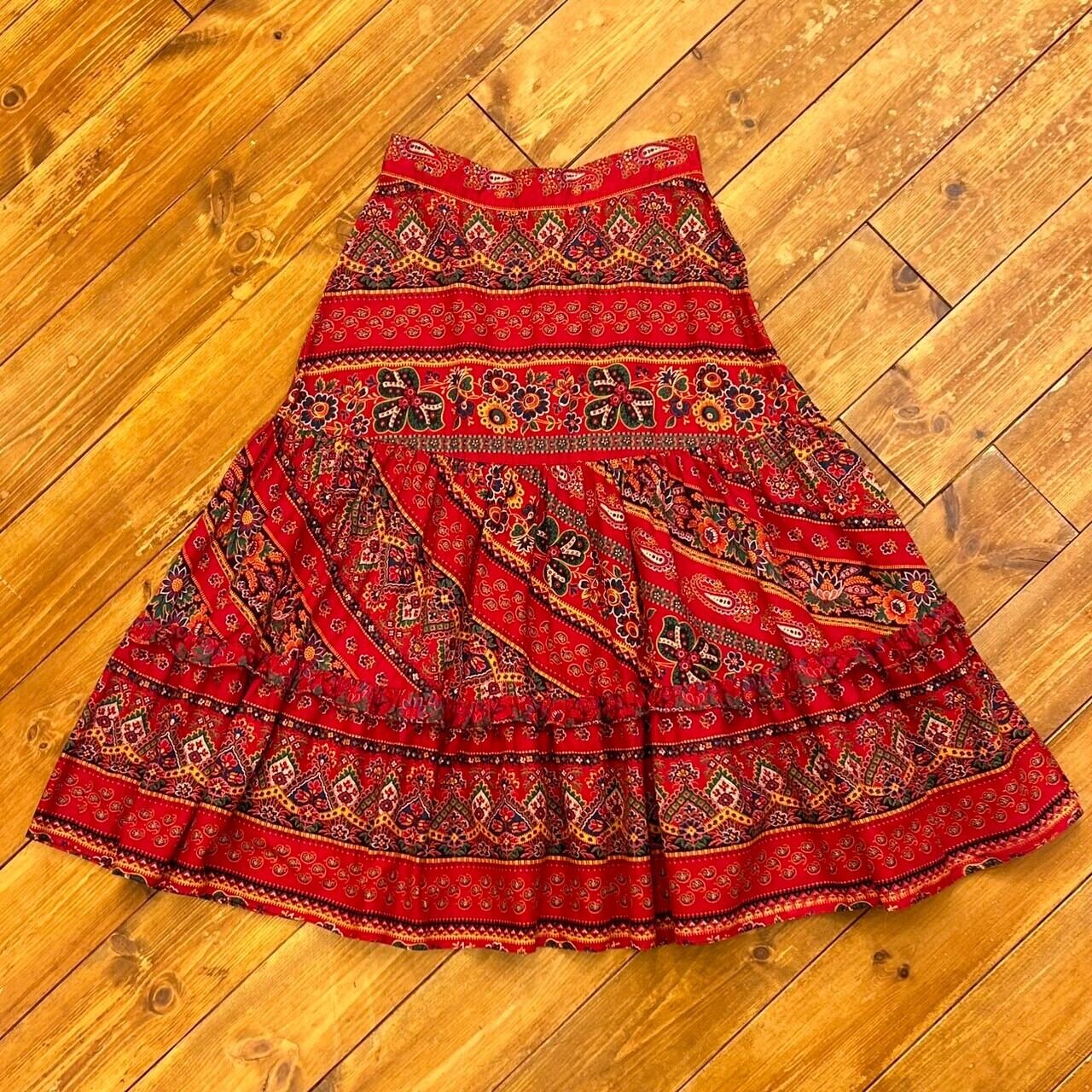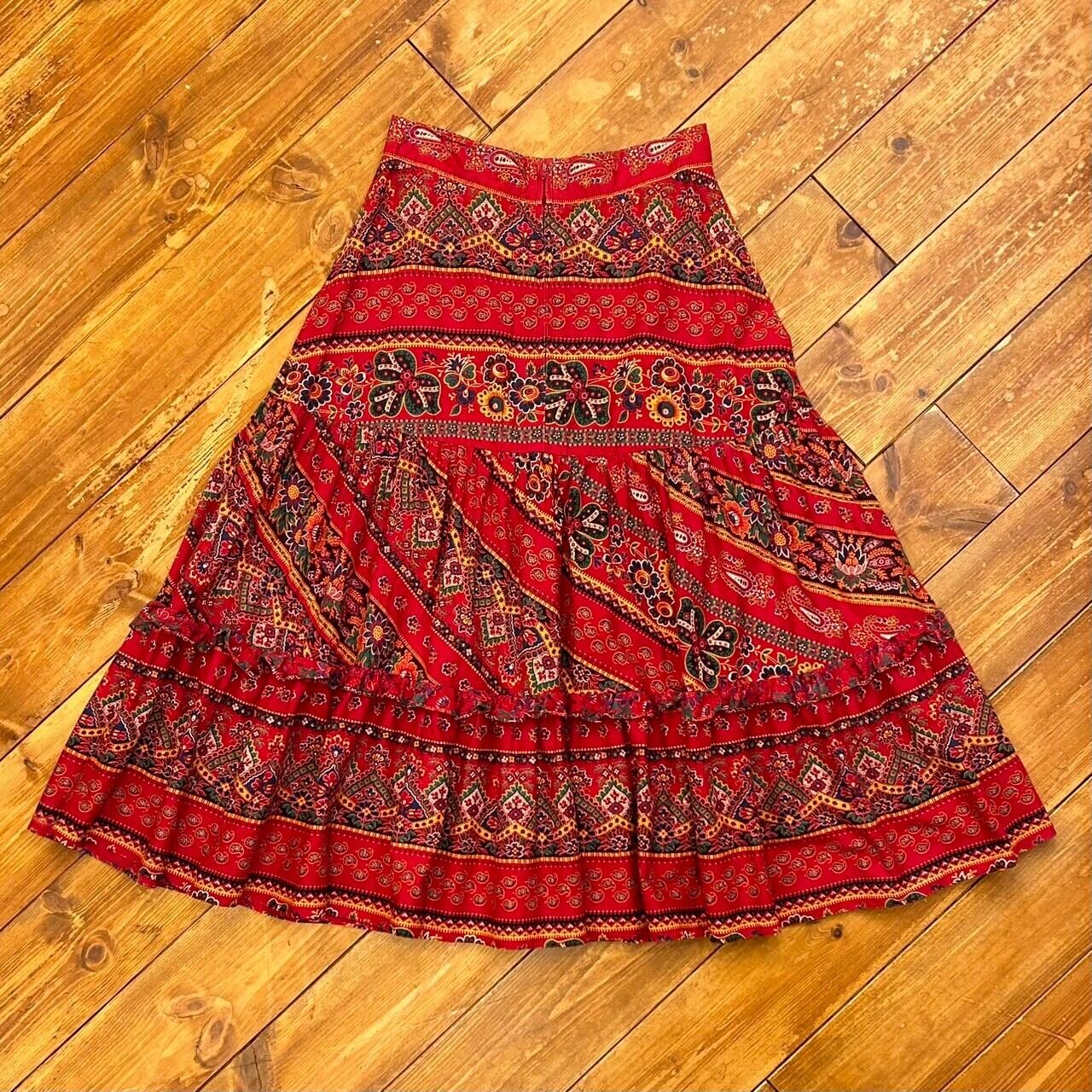 【Wistle Stop ペイズリー柄ティアードスカートvintage】