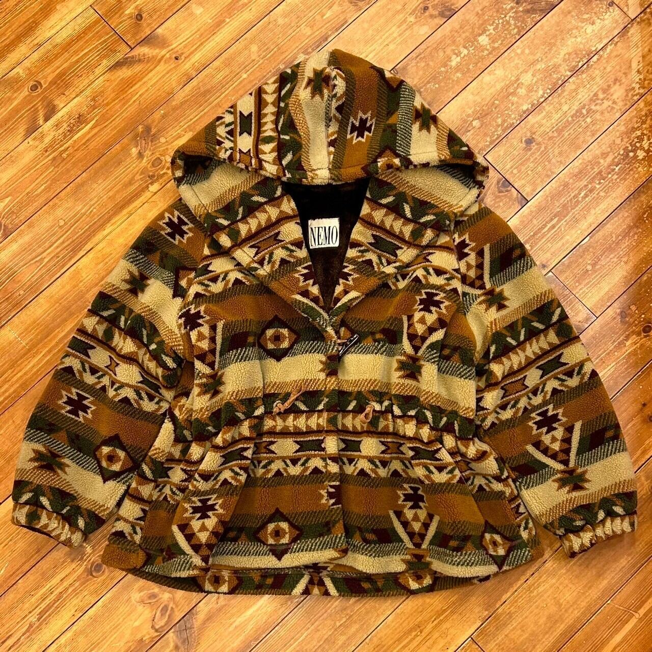 NEMO L/S BIGフードフリースボア総柄ジャケット コート ネイティブ柄