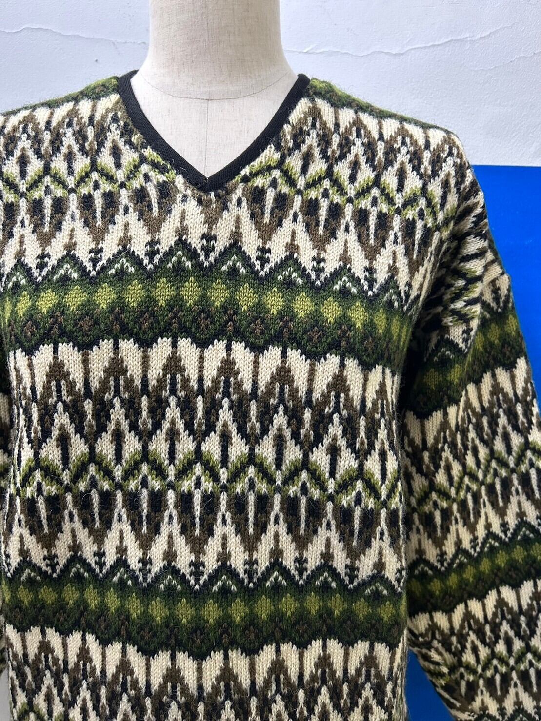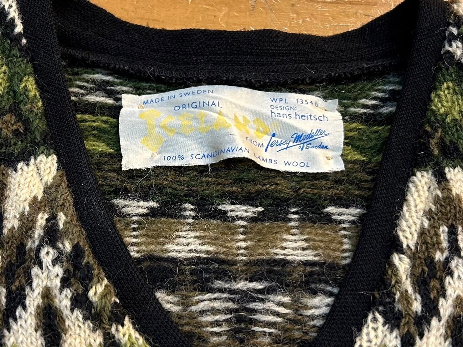 ICELAND FROM jersey modeller of Sweden L/S Vネックノルディックジャガードセーター vintage