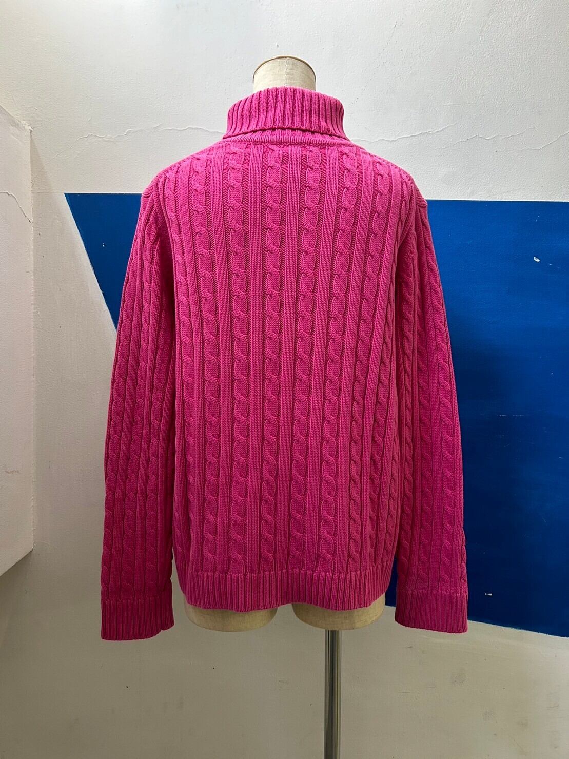 鮮やかなピンクがとても可愛いコットンニットのタートルネックセーターです。