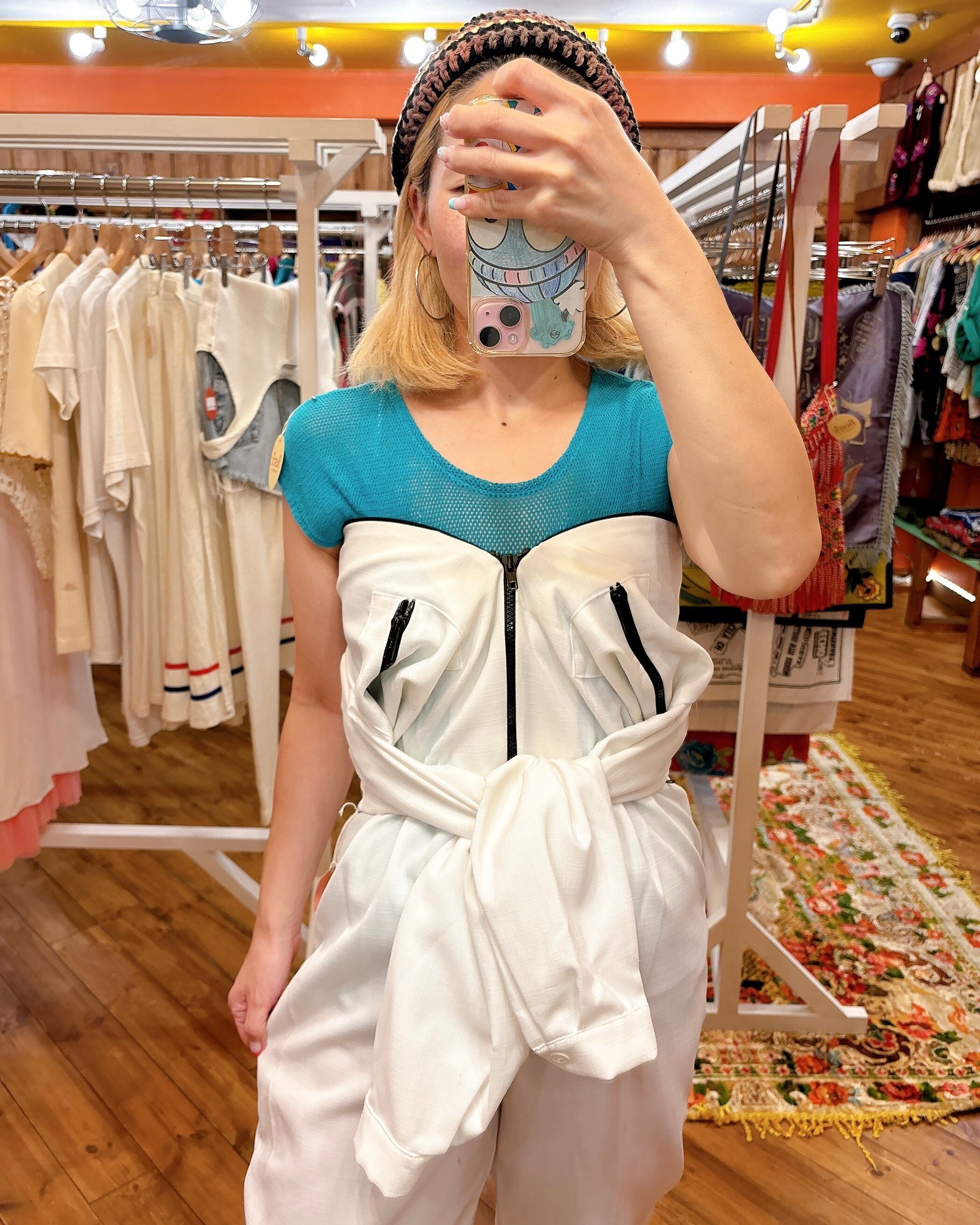 袖を通さずにジップをあげて、袖をウエストに巻くような着方もかわいかったです◎