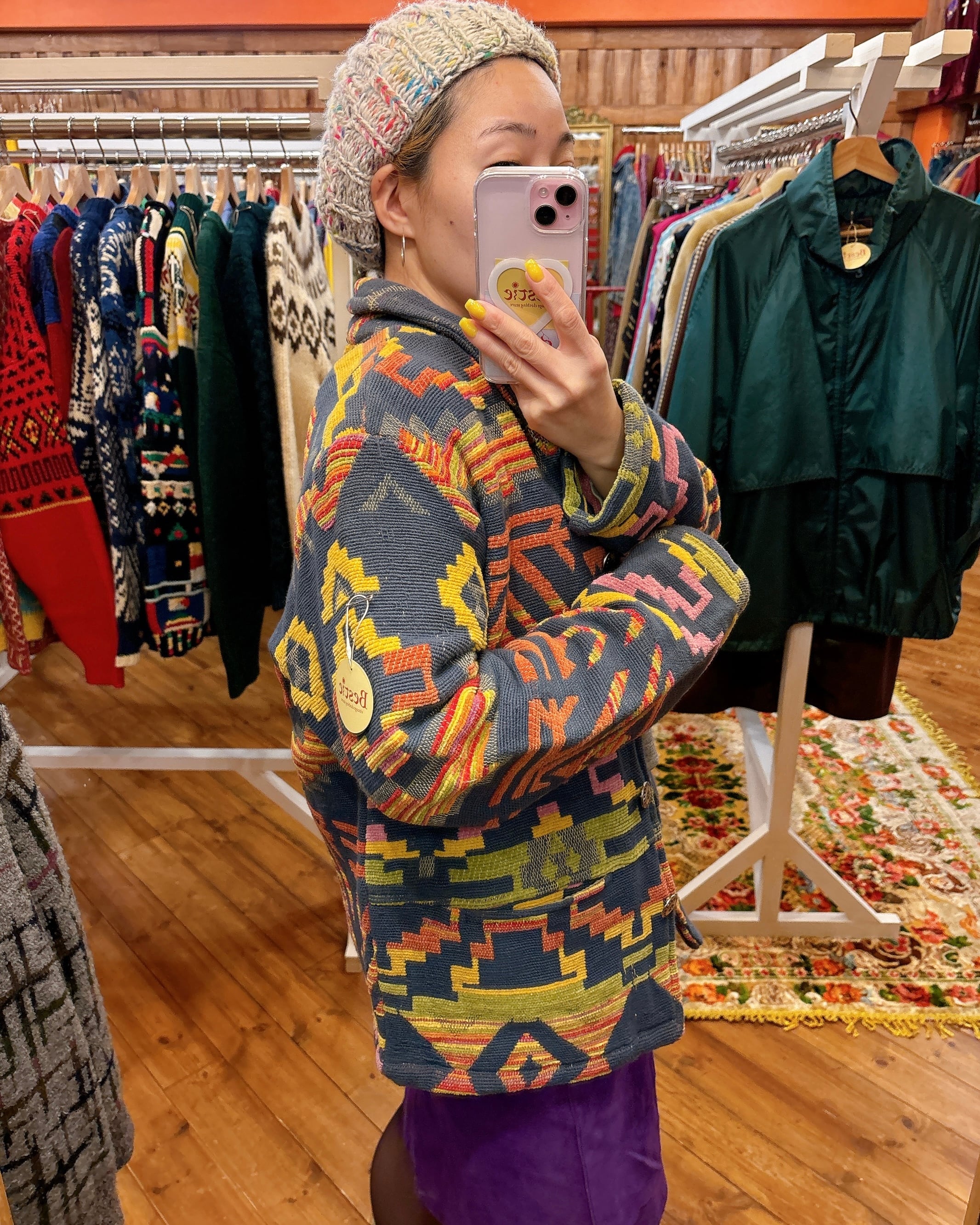 L/S ネイティブ柄ラグジャケットコンチョボタン