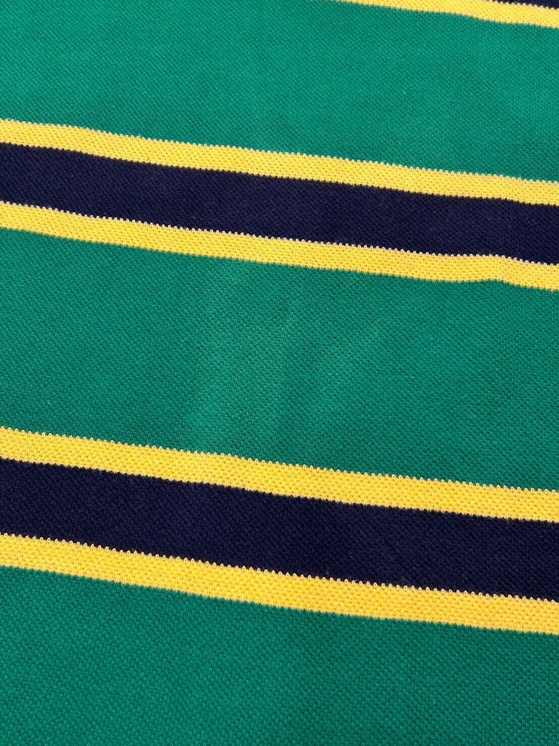 グリーンにネイビーと黄色のラインがかわいいです。ニット生地で柔らかくやや伸縮性があります。