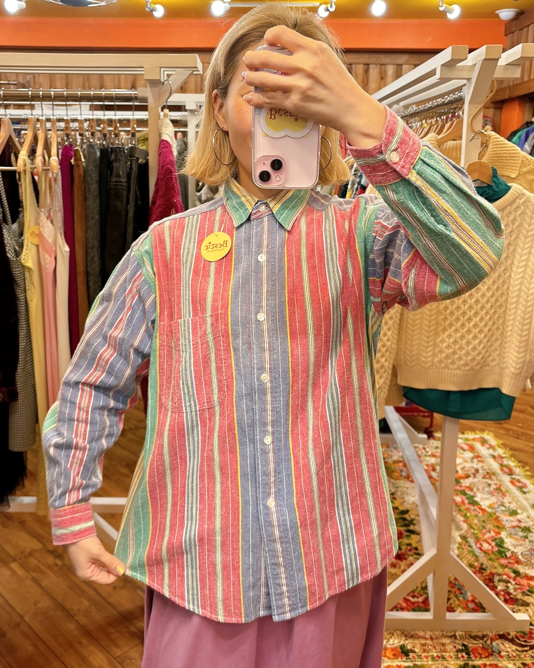 【QUIZZ L/S マルチストライプ柄 シャツ】
