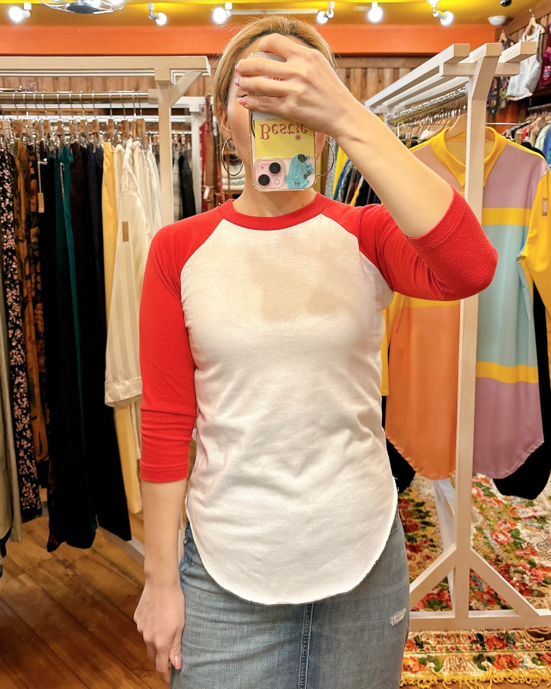 タイトなシルエットのラグランTシャツです。