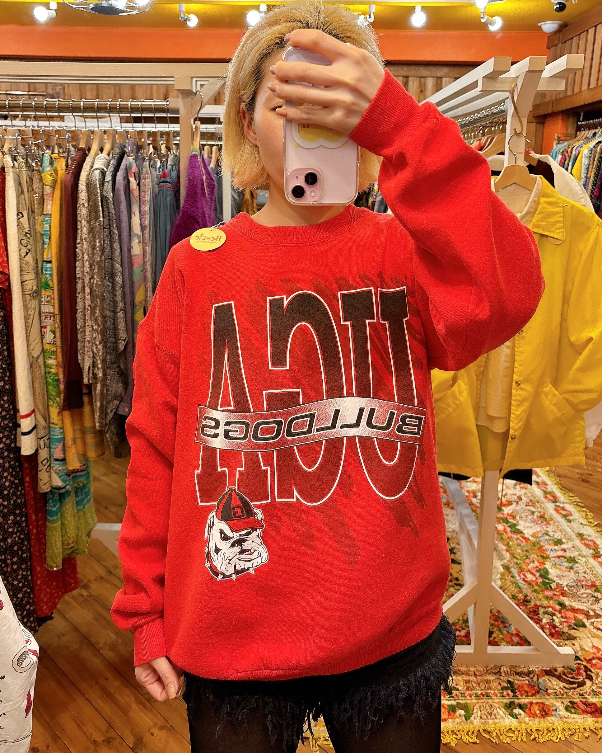 【90s Hanes L/S プリントクルーネックスウェットシャツ“UGA BULLDOGS”】