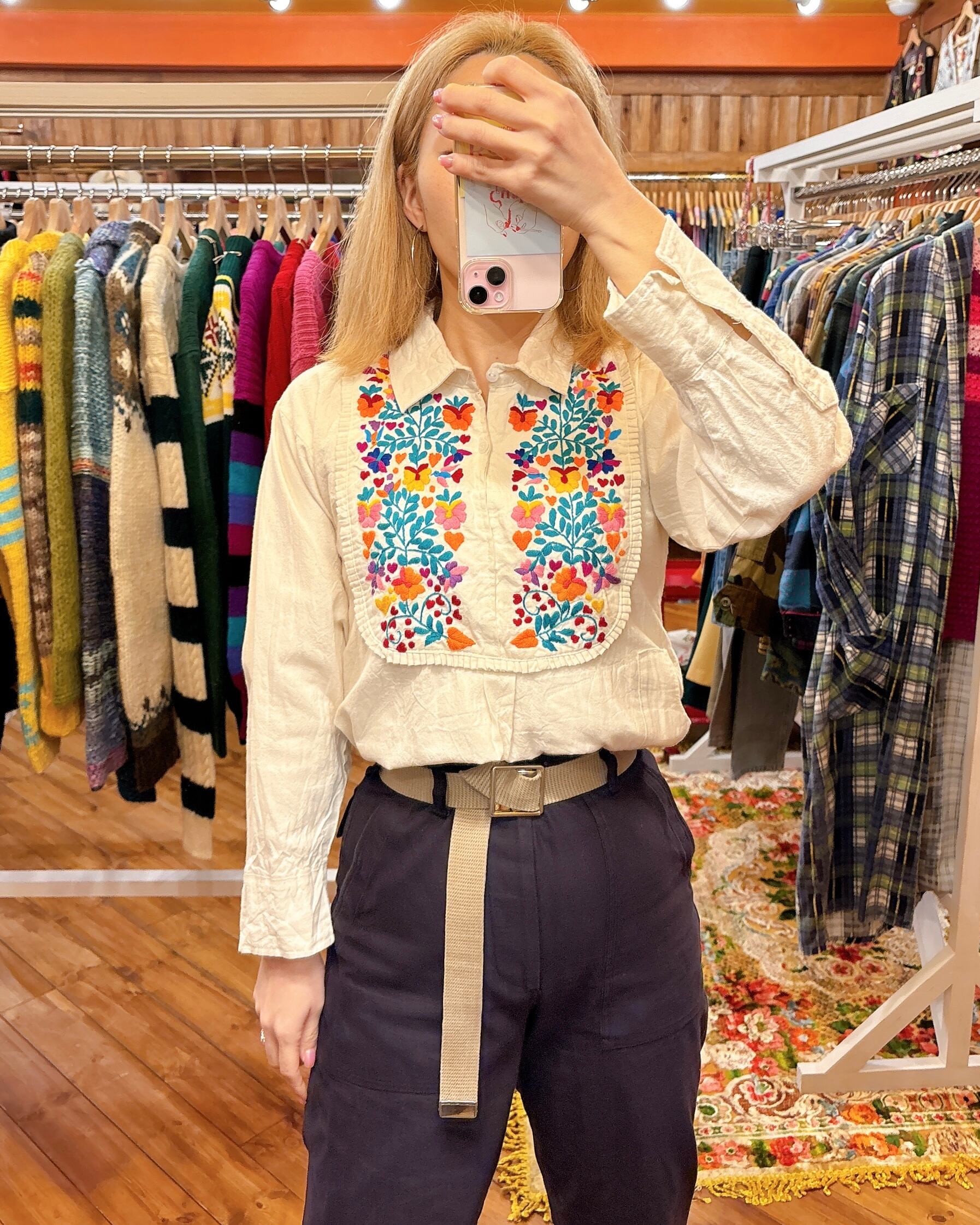 刺繍の可愛らしさとビンテージらしい風合いのあるプルオーバーブラウスです。