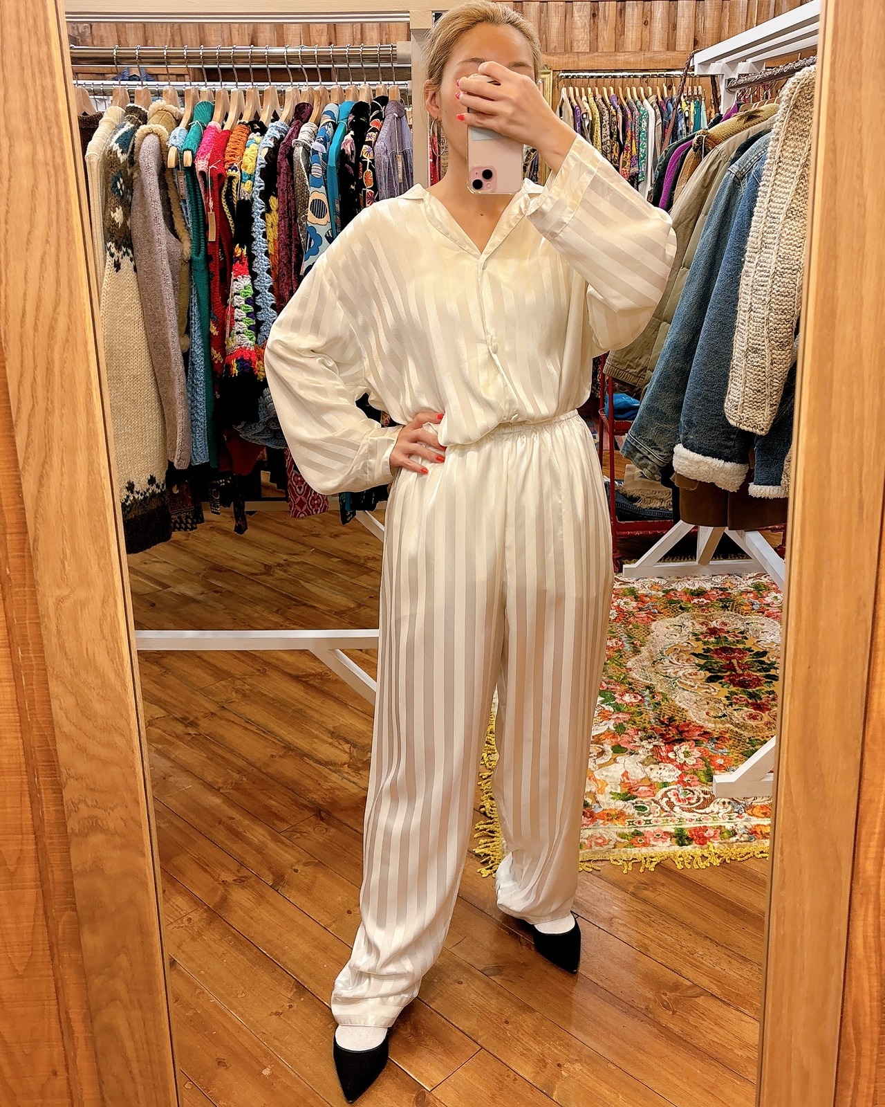 L/S サテン ストライプ柄 パジャマ セットアップ シャツ/パンツ
