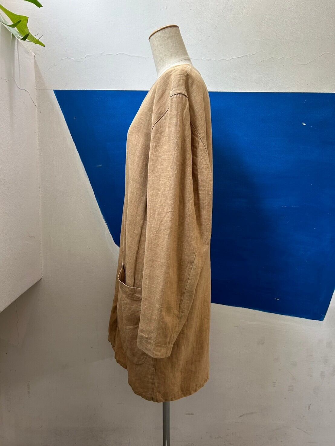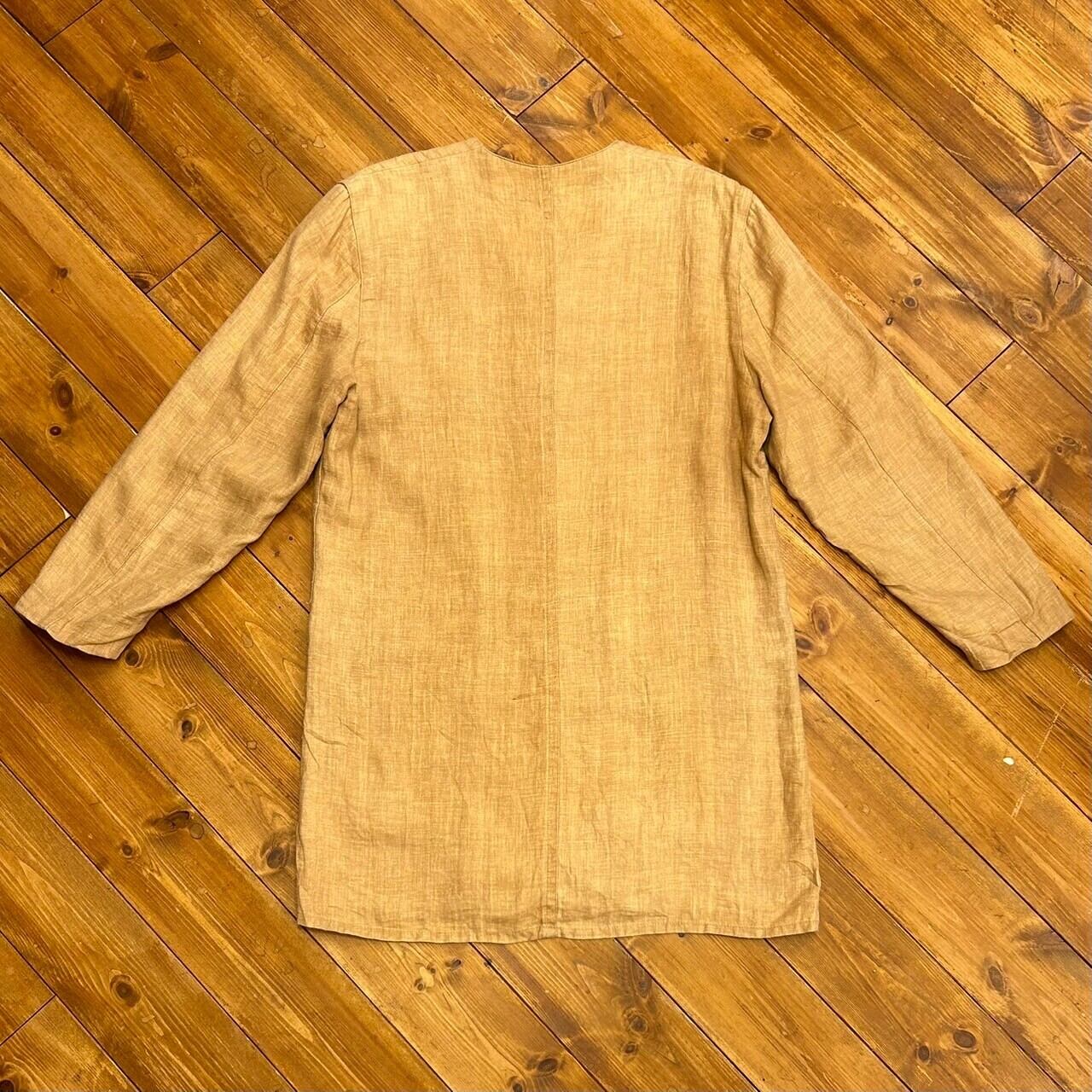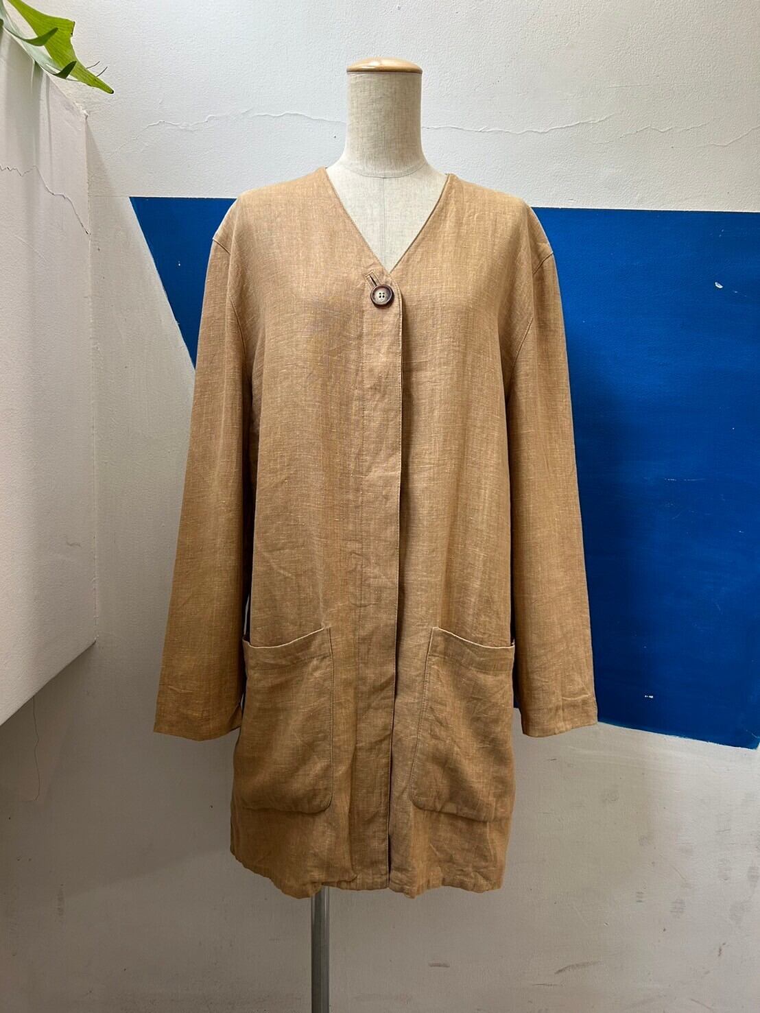 リネンのナチュラルな風合いと襟なしでなだらかなラインが女性らしくて素敵です。丈長めなのもgood!!おすすめのジャケットです。