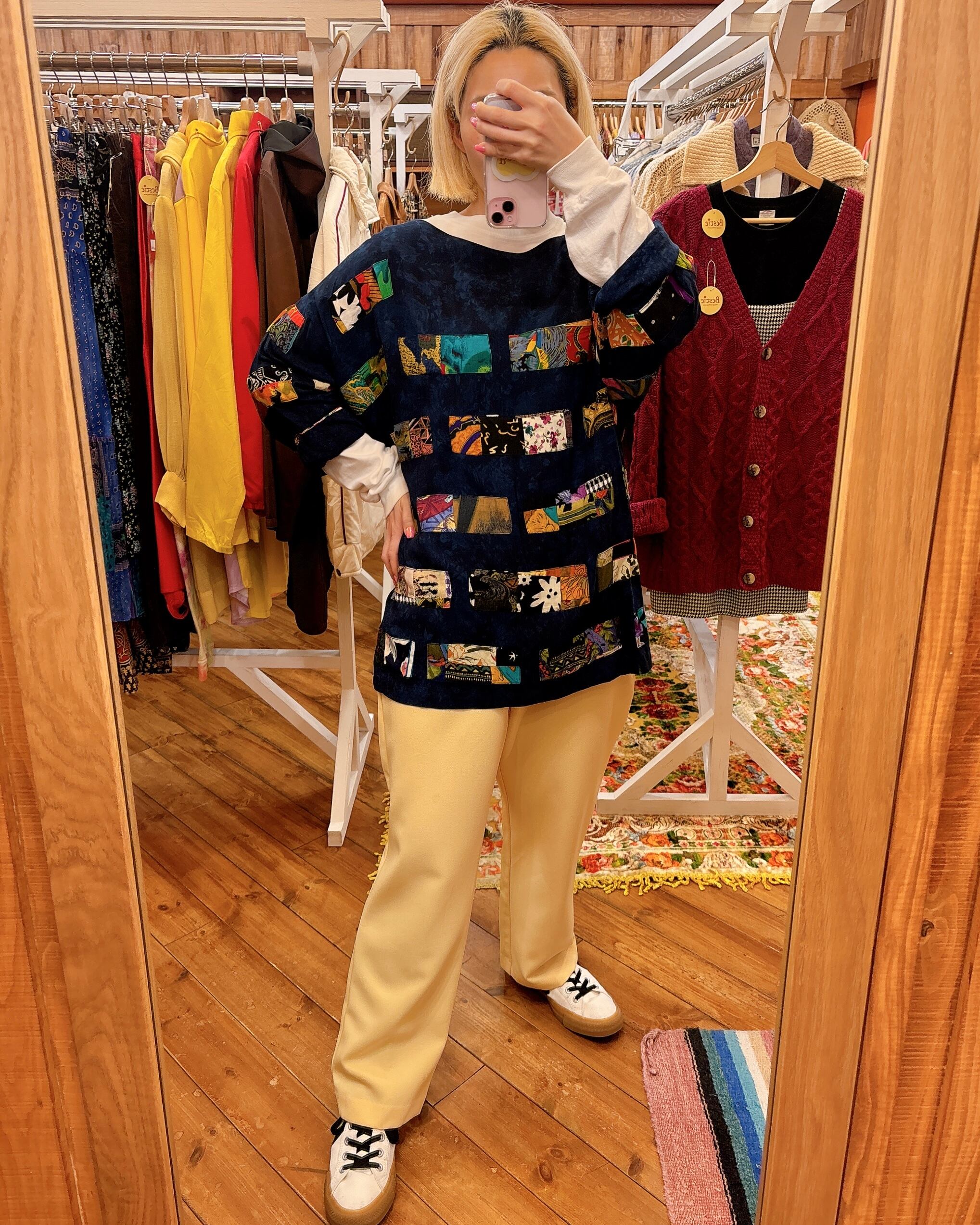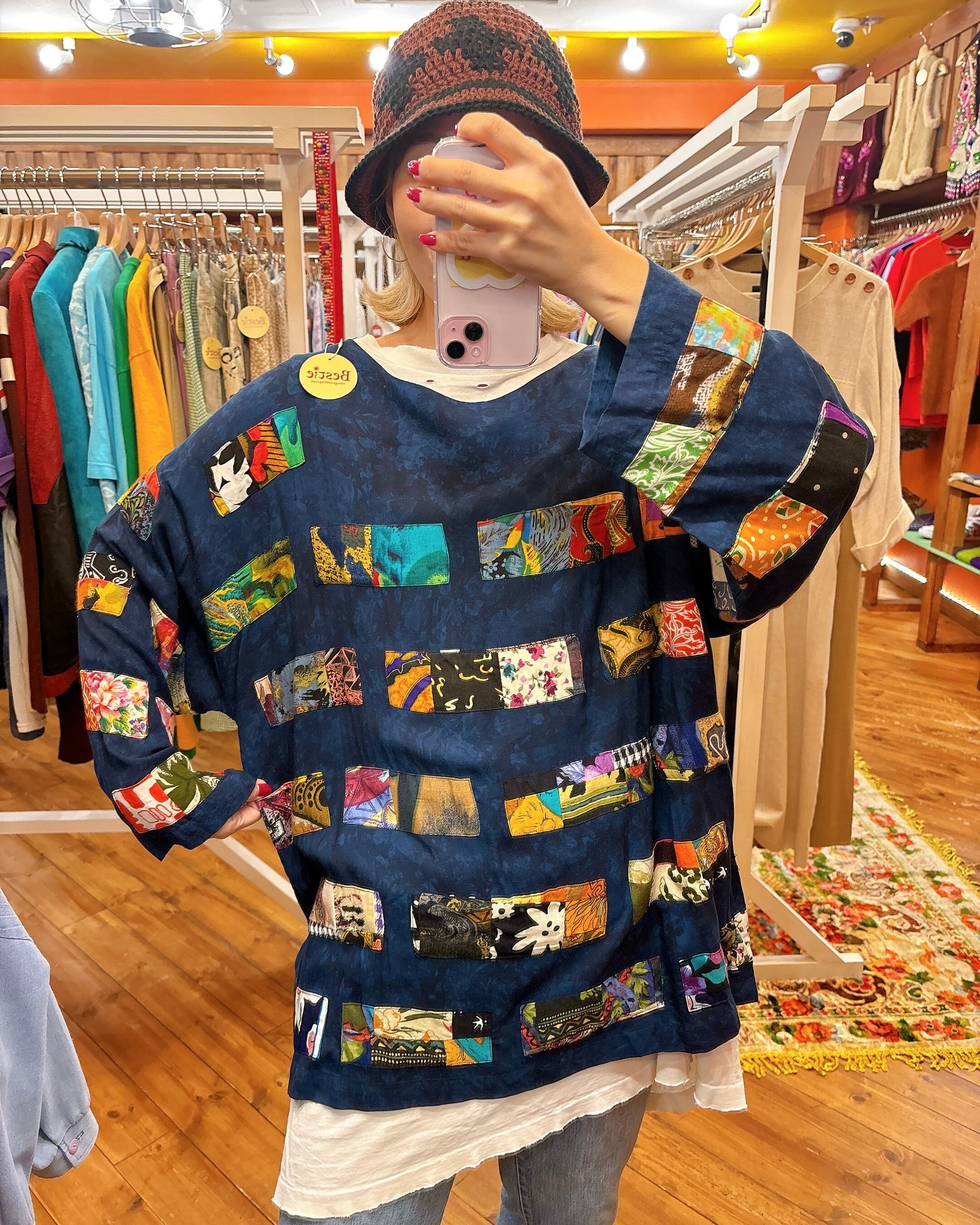 さまざまな色柄のパッチワークがかわいいエスニックプルオーバーです。