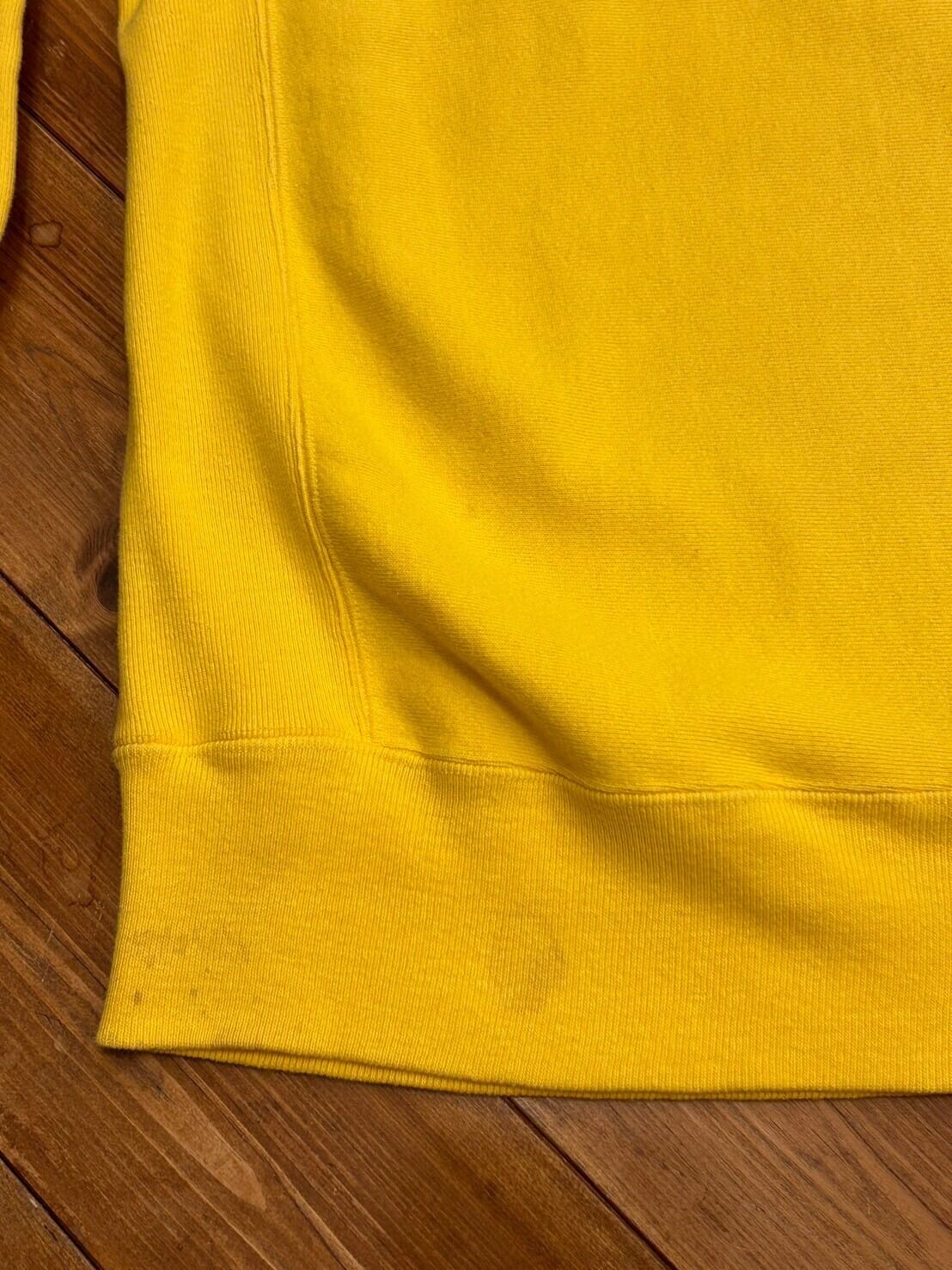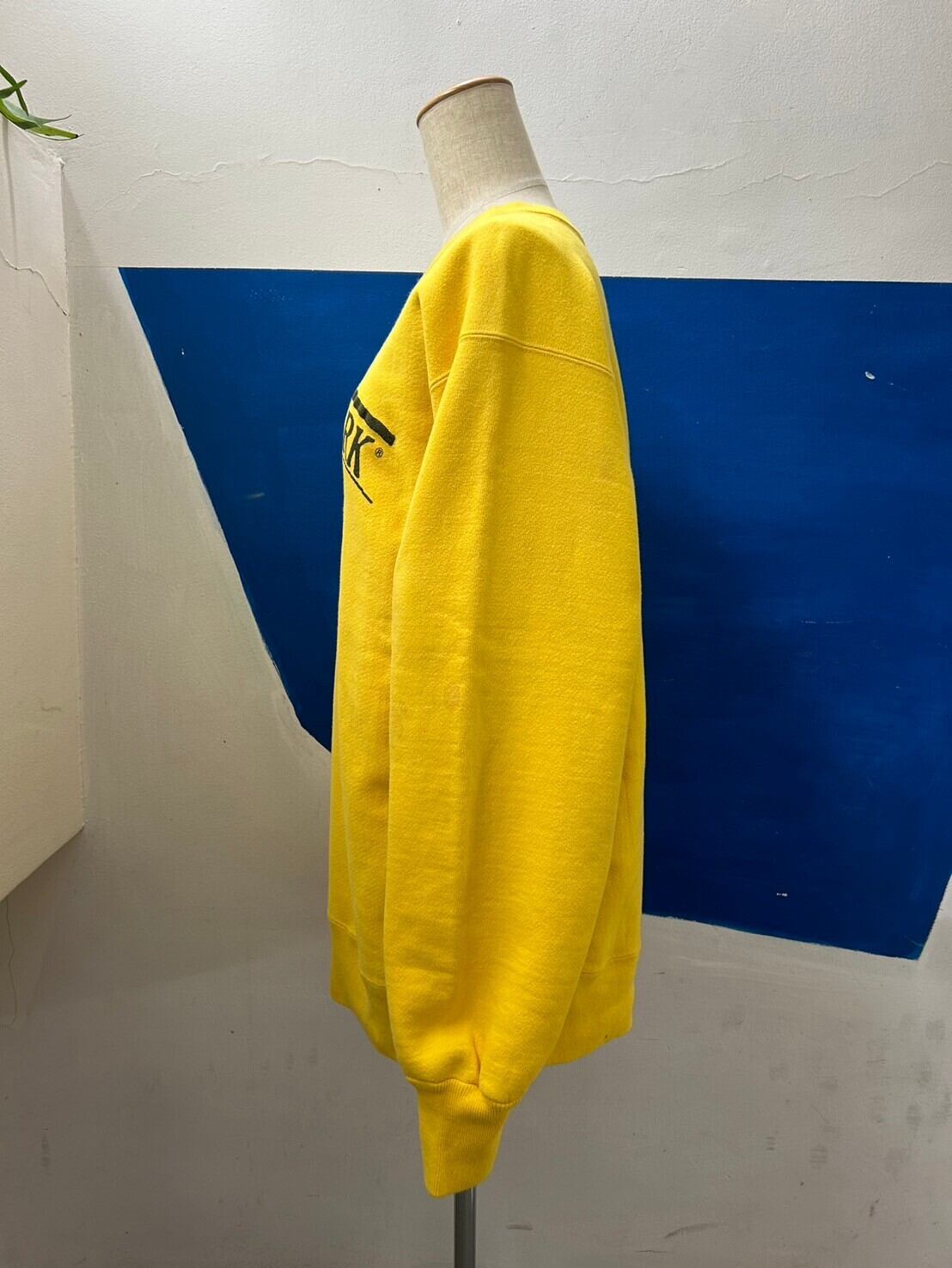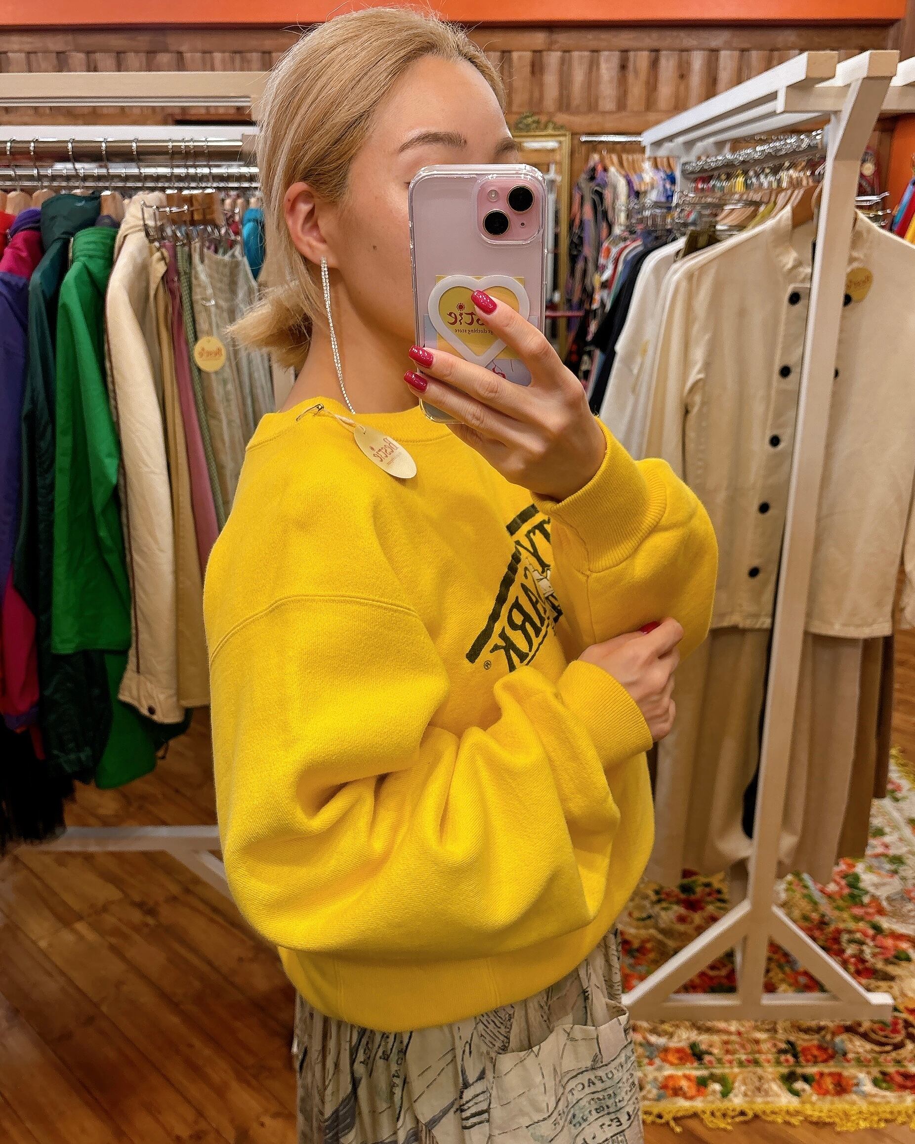 イエローのボディにややアーチがかったロゴデザインがかわいいスウェットシャツです。