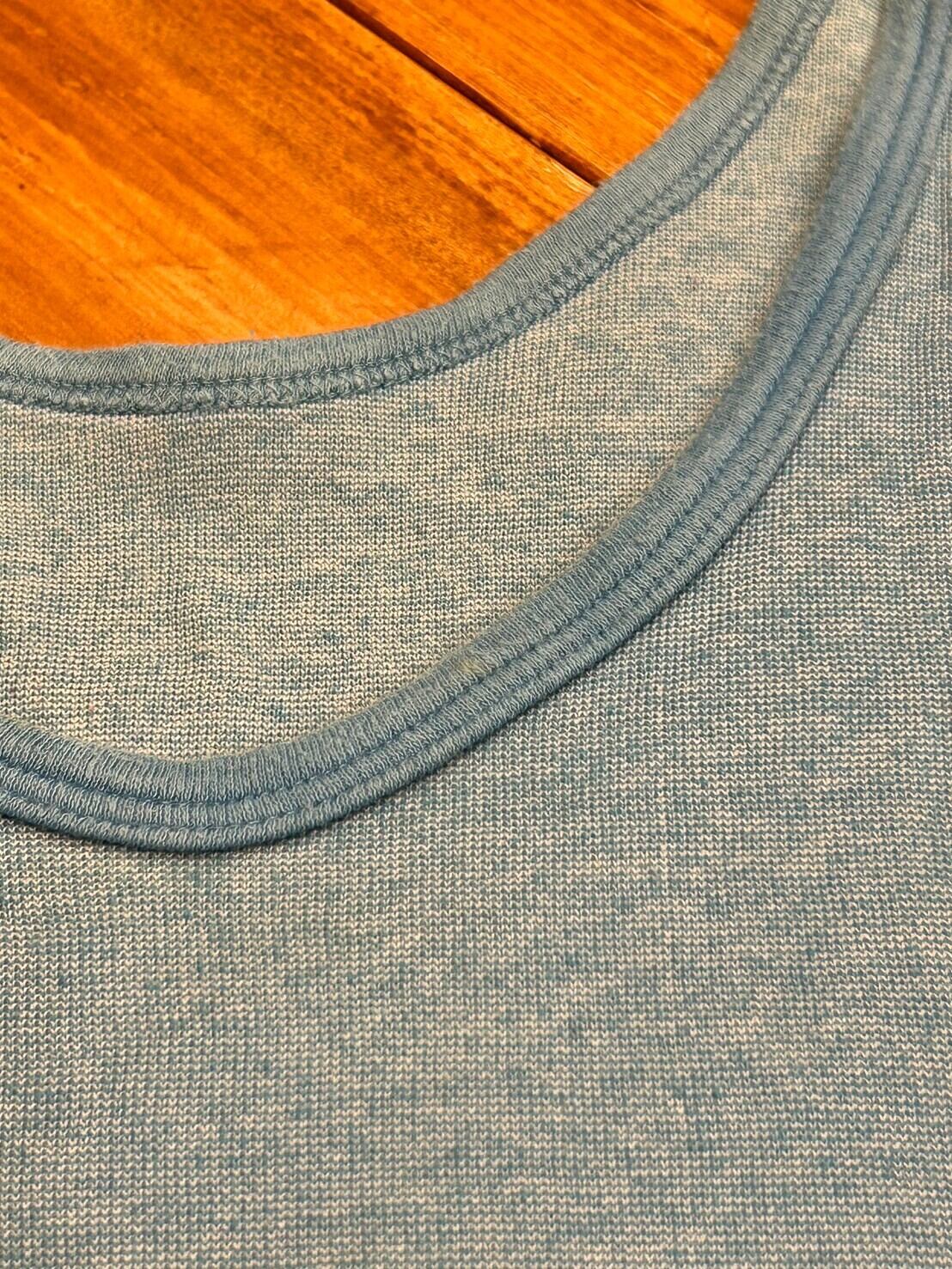 シンプルなタンクトップです。ブラ紐よりは内側に肩部分がきました。インナーで使いやすいです!