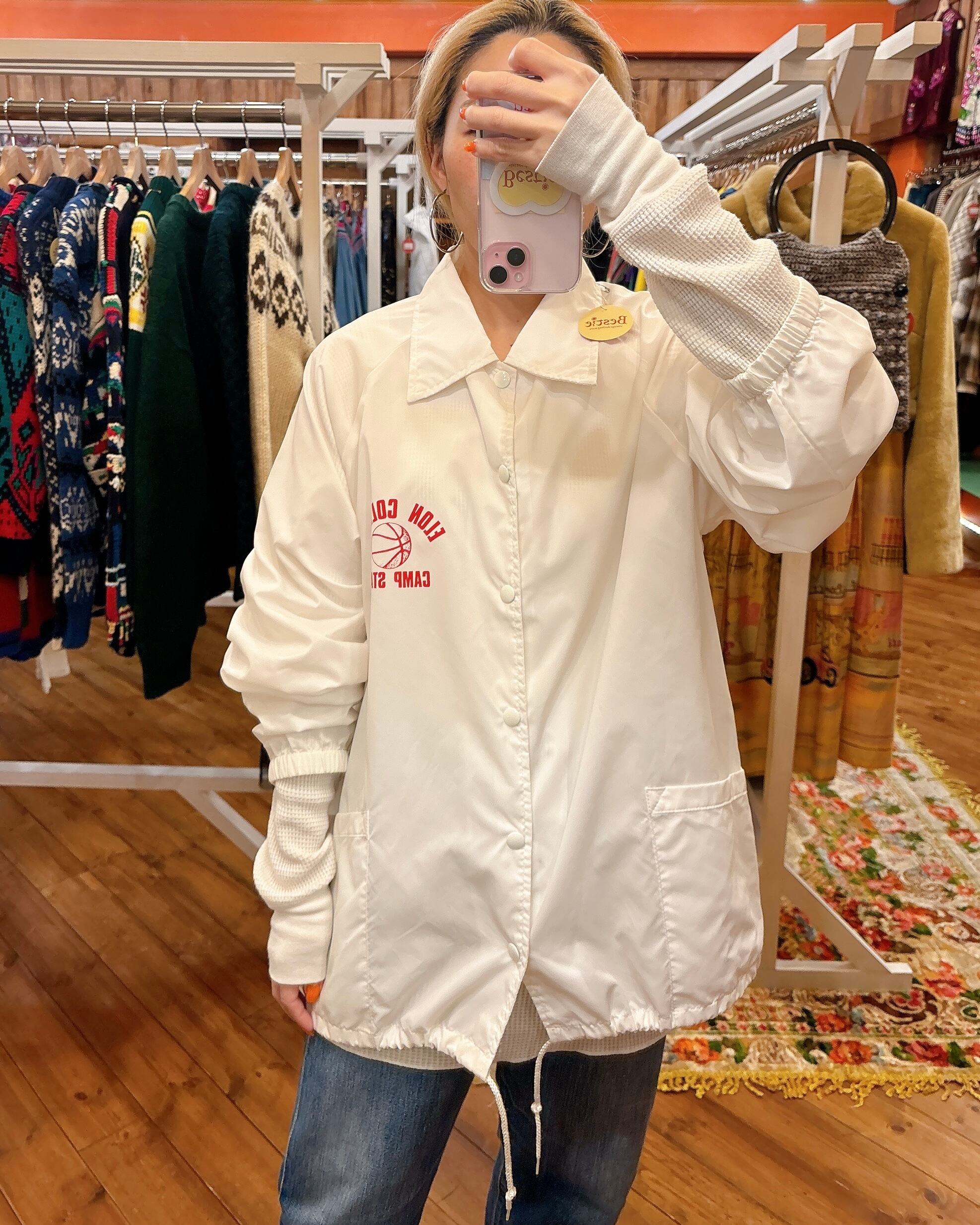 裏地なしのコーチジャケット。白ならではの透け感がとてもかわいいです!!