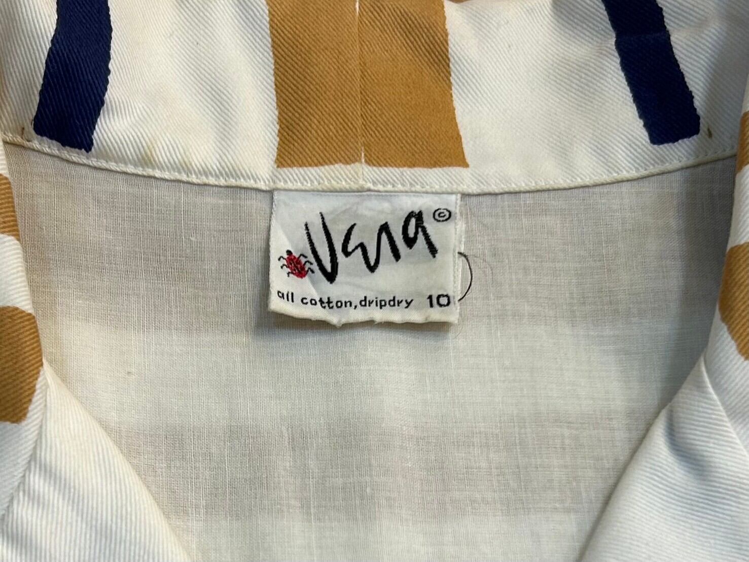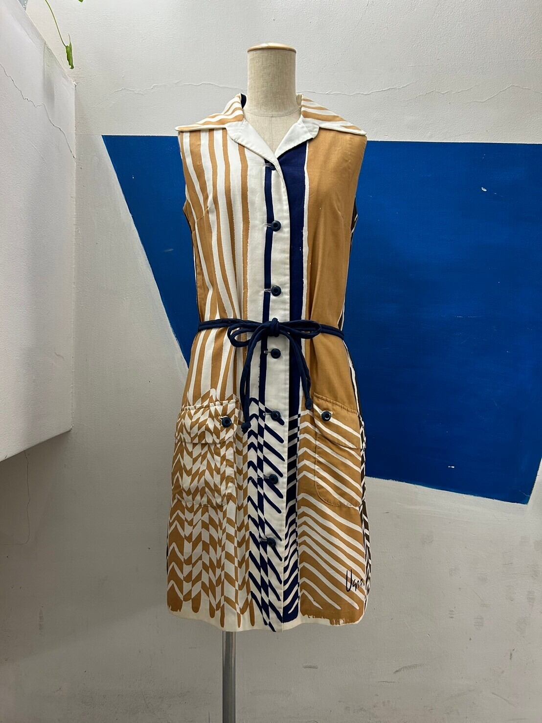 大きなありのデザインがレトロでかわいいワンピースです。ウエストリボンは平紐ではなく丸いロープのような紐でかわいいです。落ち着いたカラーで大きなプリントものですがナチュラルな印象です。