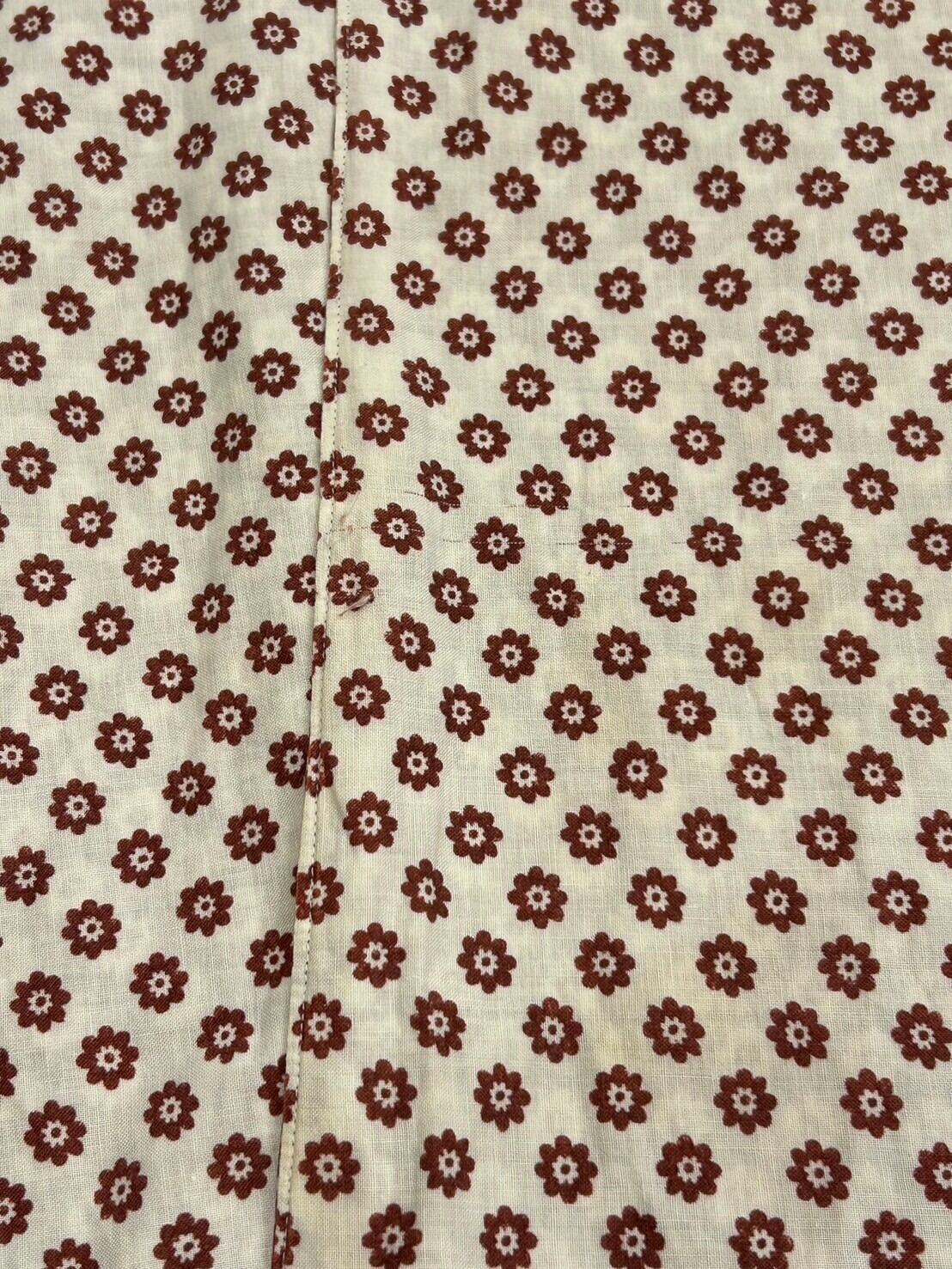 どちらの面も合わせやすさ抜群のカラーと控えめな小さめ花柄の総柄です。コットンなので通年通してつかえます。デニムとのレイヤードもワンピやスカートとのレイヤードもおすすめ!