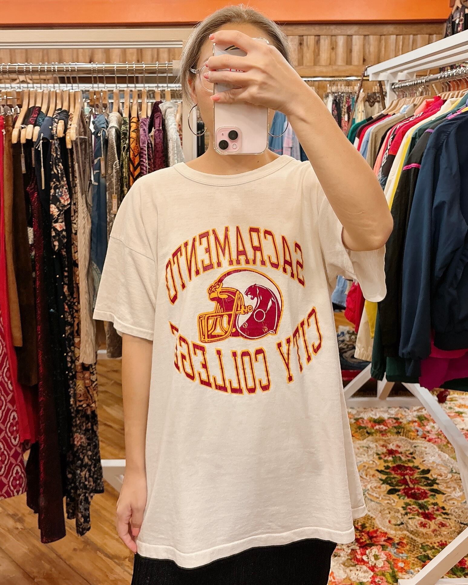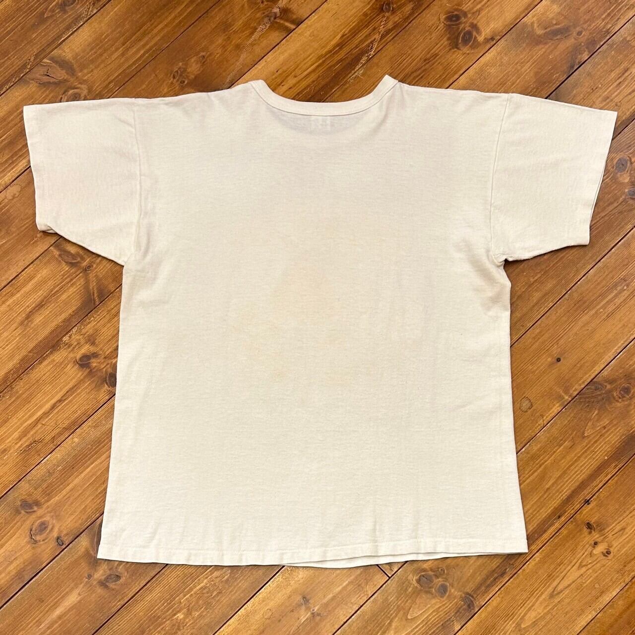 白地に大きめのプリントがかわいいvintage Tシャツです。しっかりしたコットン100%生地でサイズがXLなのもはなまるです。男女問わず、季節問わずよろおすすめです。