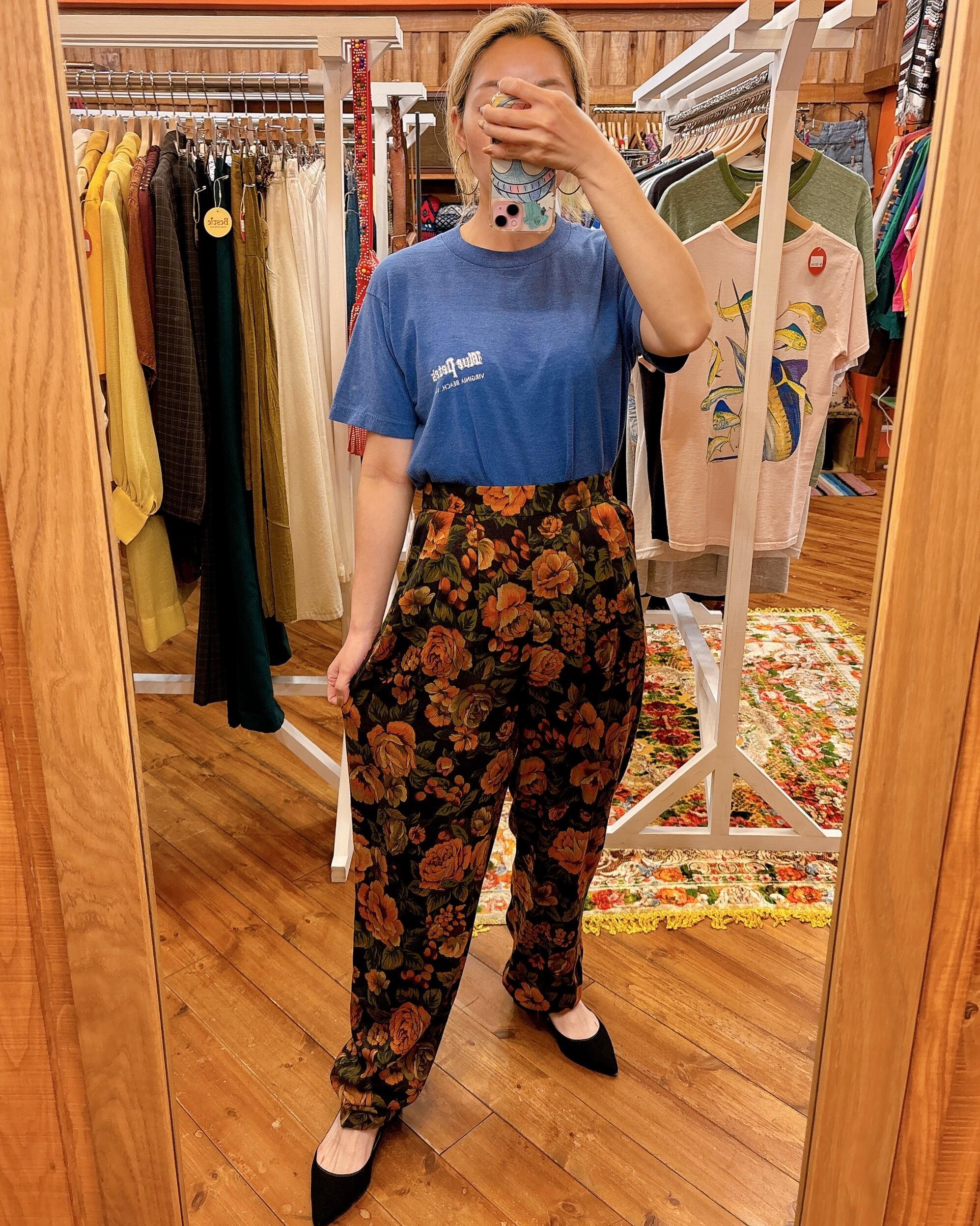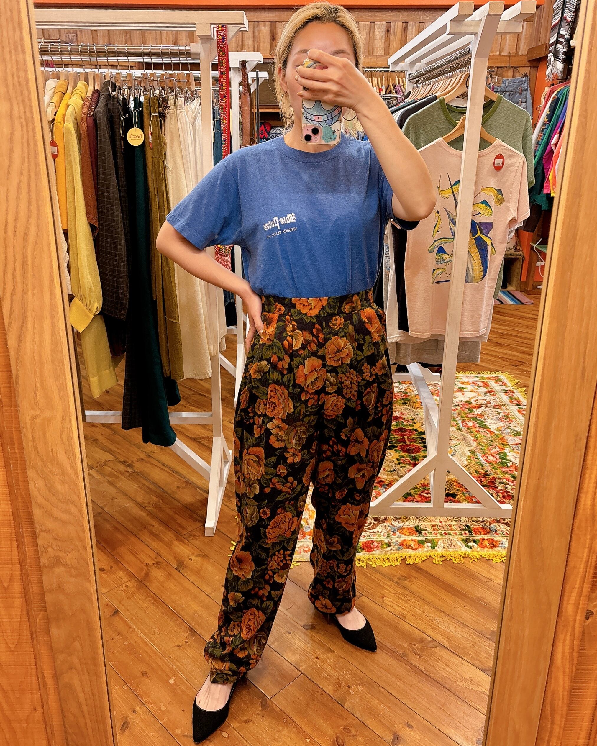90s 花柄 総柄 レーヨン ウール タックパンツ 両脇ゴム入り