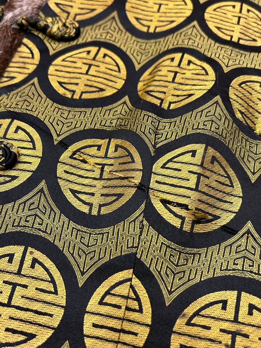 N/S リアルファー(おそらくラビット) ジャガード リバーシブル 総柄 チャイナベスト エスニック vintage