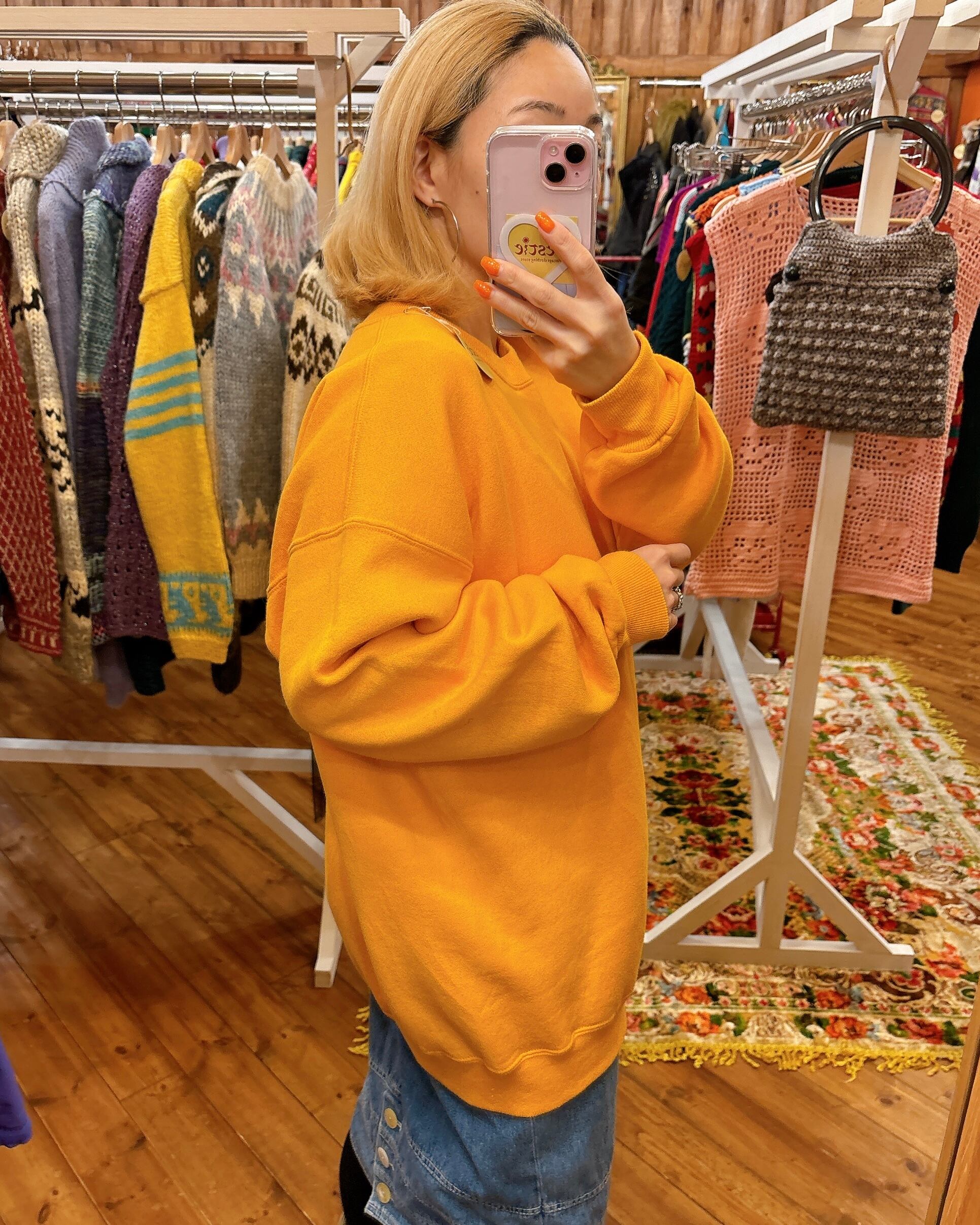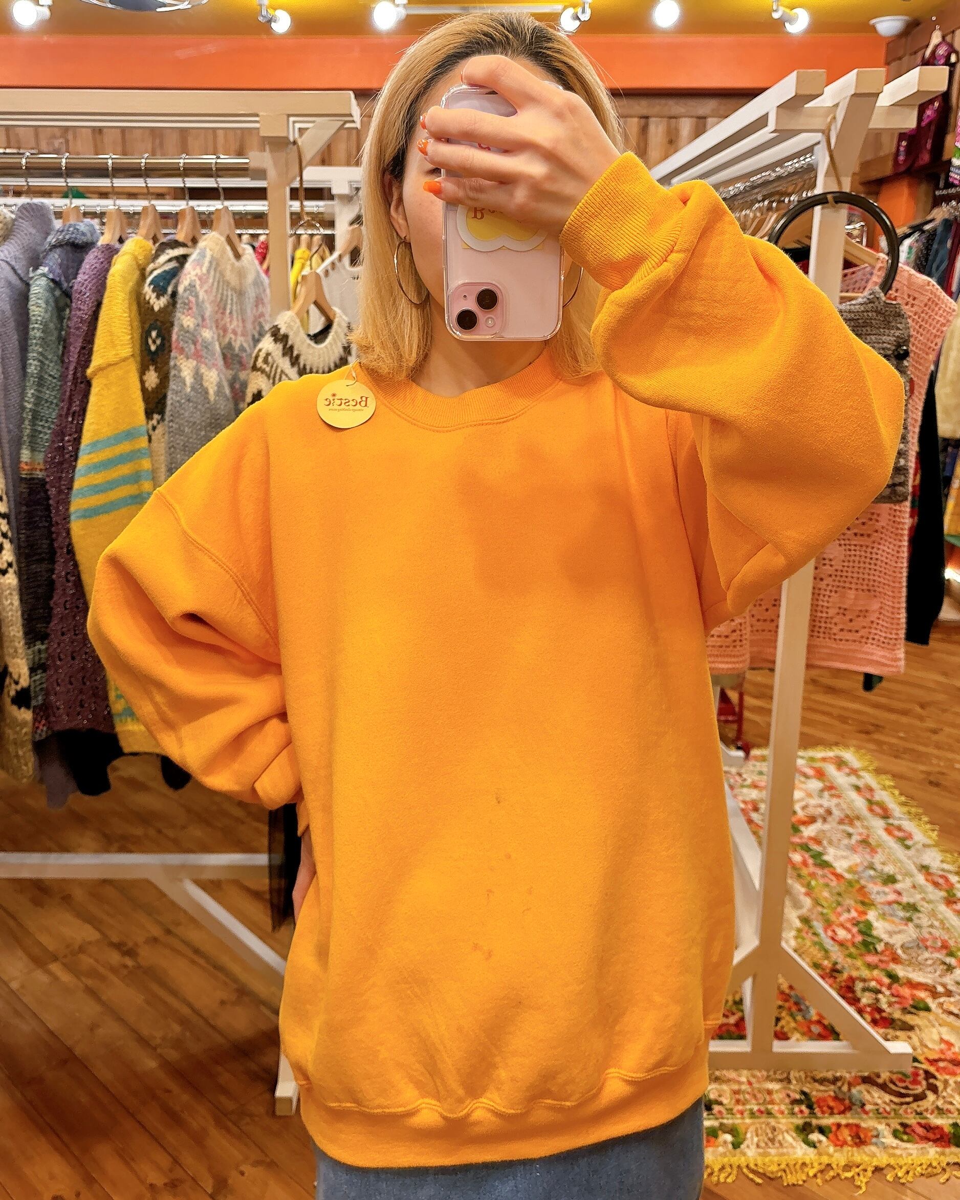 クルーネック、ゆったり大きめサイズの無地スウェットです。やや丸みのあるシルエットがかわいいです。