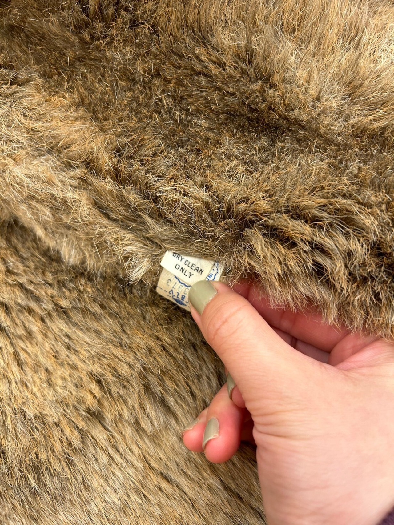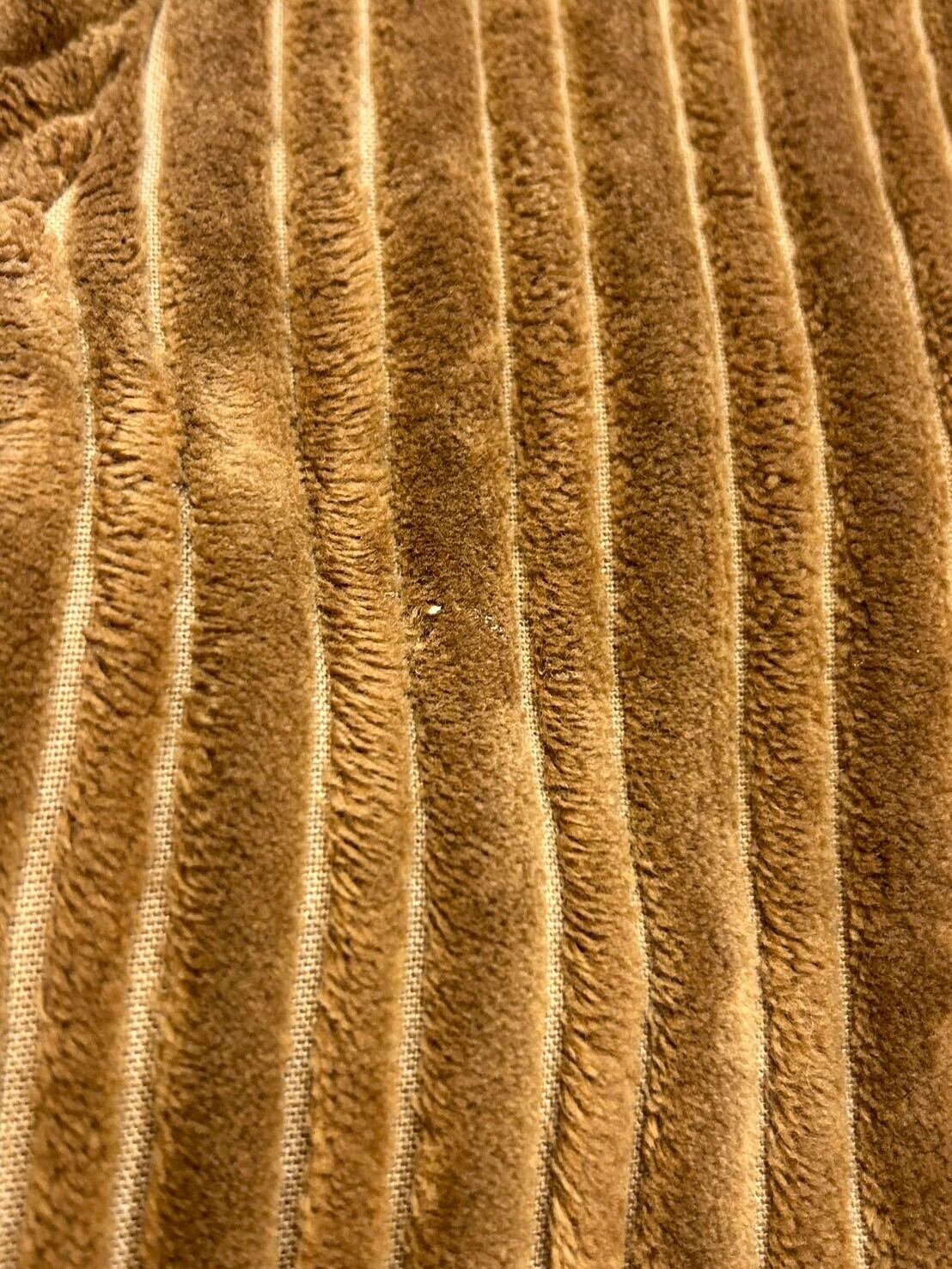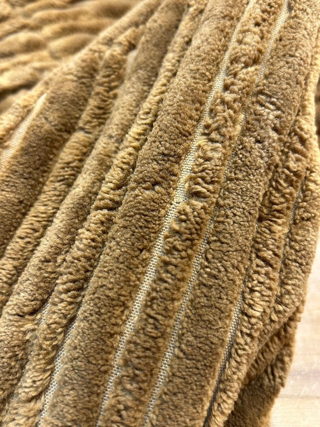 とてもかわいいレインボーカラーのタグがついています。縫製逆に縫われていますがユニオンメイドのタグもついています。表地は太い太い畝のコーデュロイのような生地。裏地はフェイクファーがフードまでしっかりついています。袖内側はキルティングです。