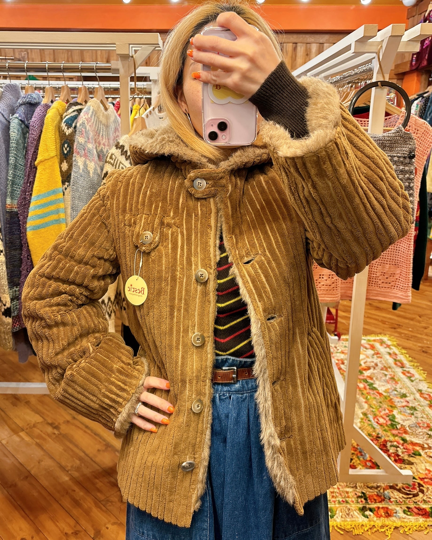 L/S 太畝コーデュロイ 裏地フェイクファー フードジャケット vintage