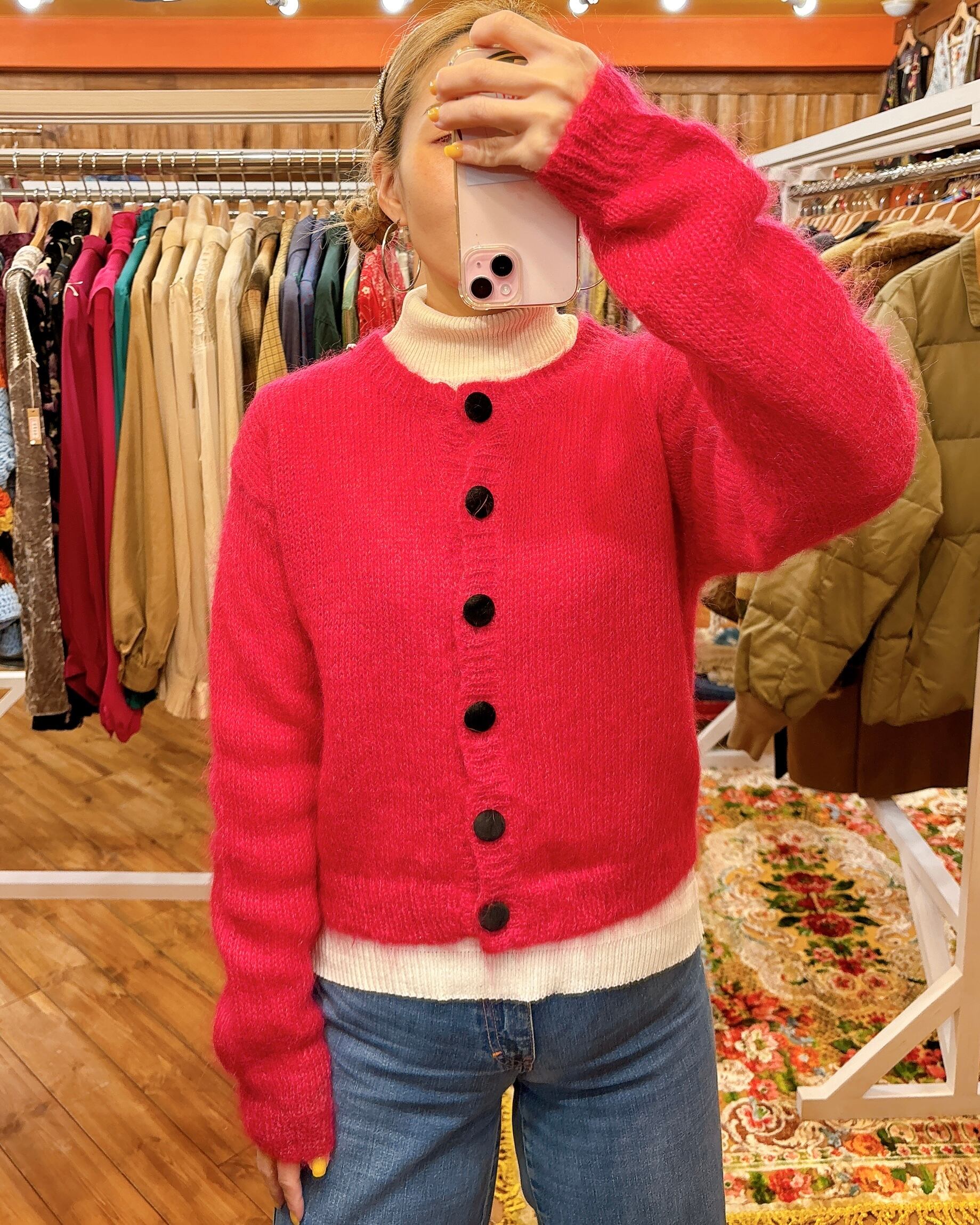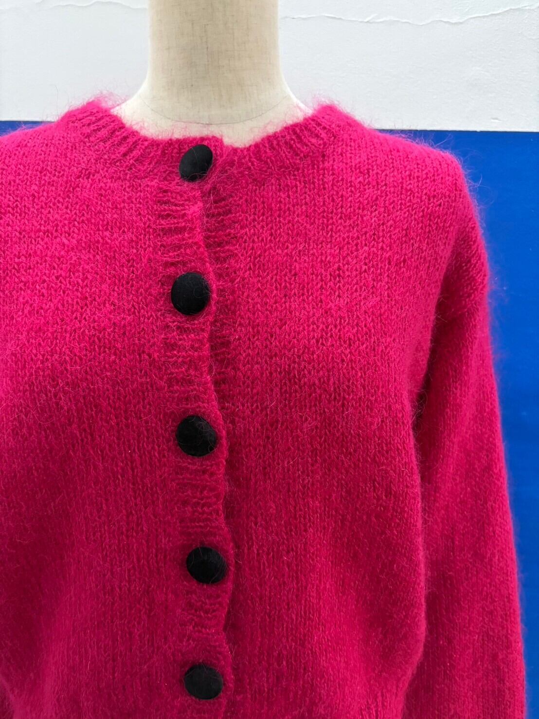 【L/S モヘアニットカーディガンベロアくるみボタン】