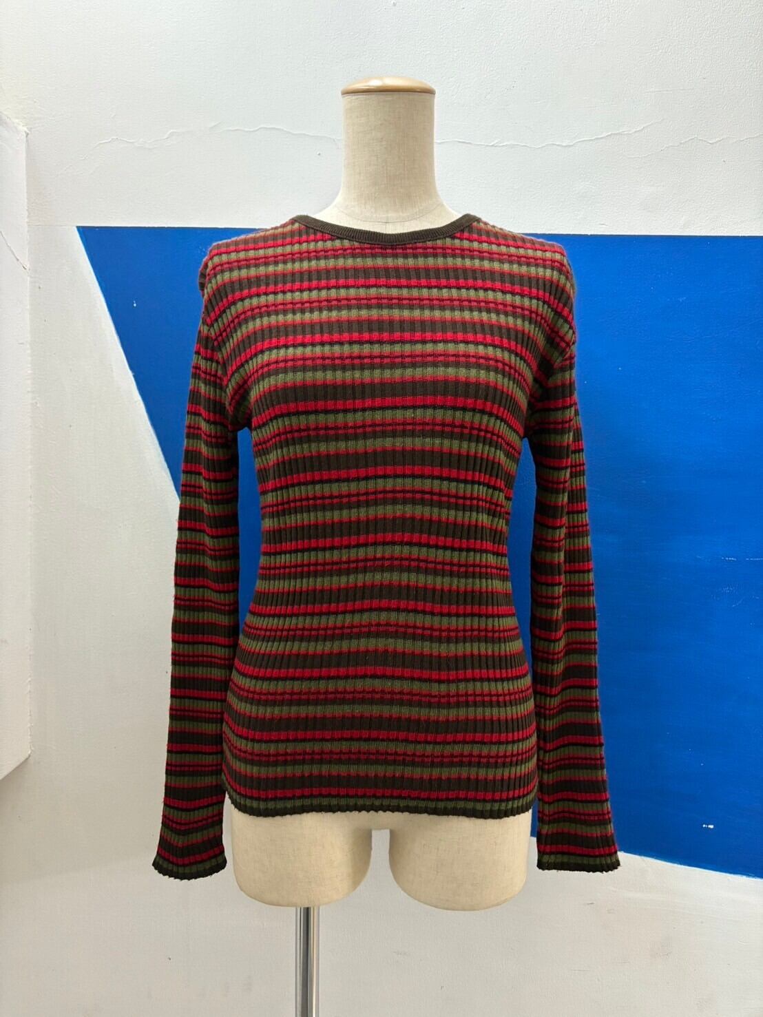 L/S 細ボーダー柄 クルーネック リブニット プルオーバー トップス