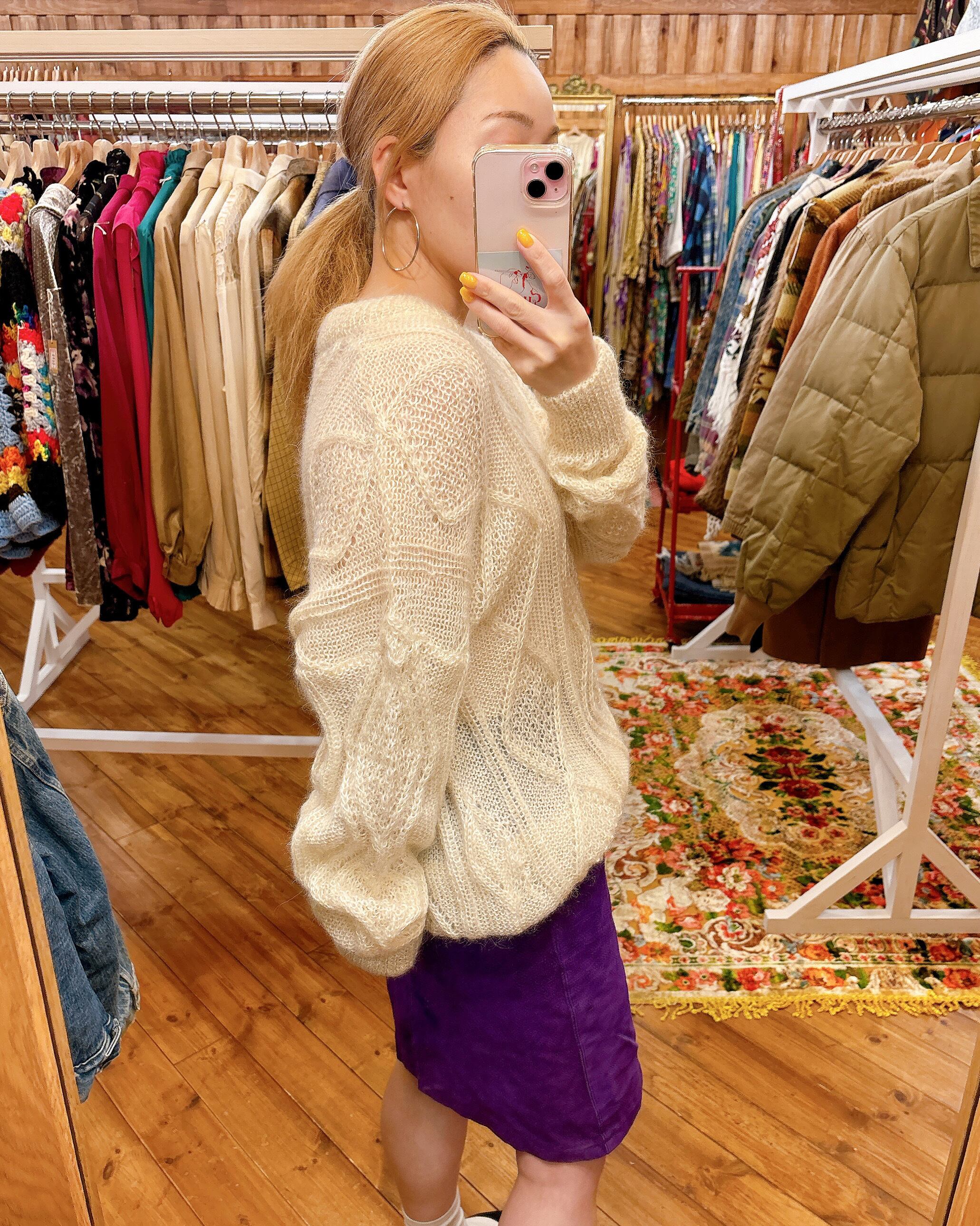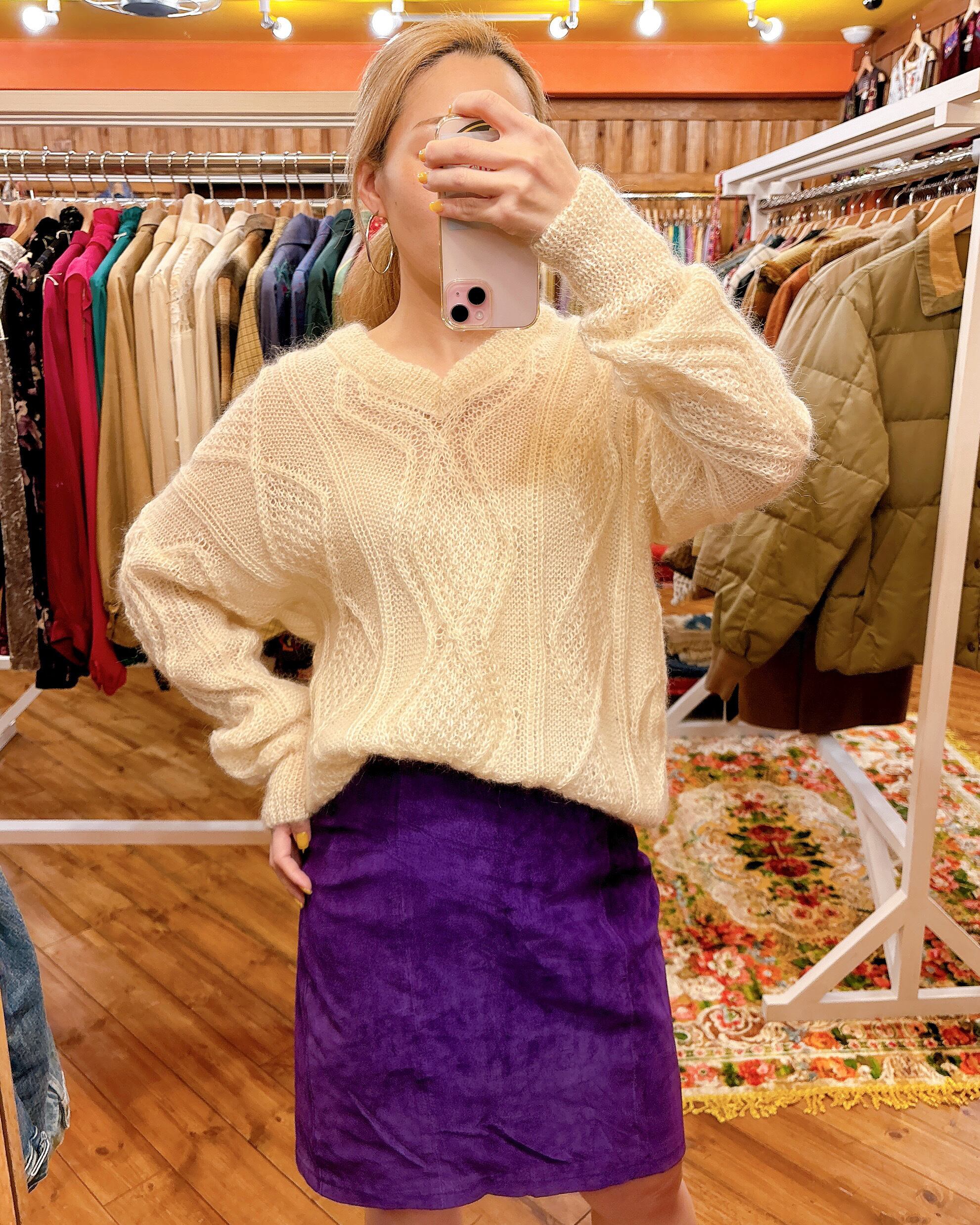 SONNY KNIT WEAR L/S Vネック ケーブル編み モヘア ニット プルオーバー セーター