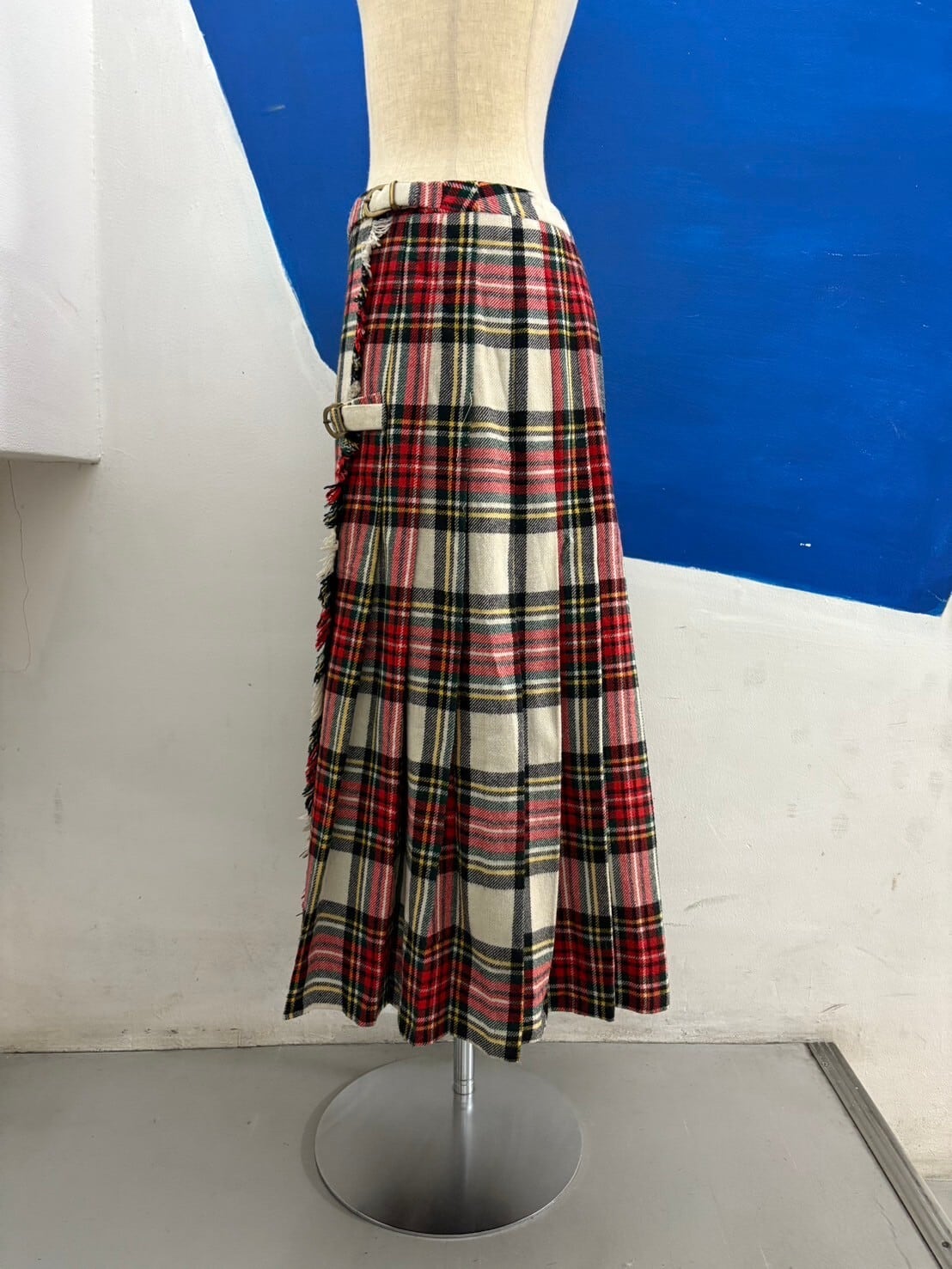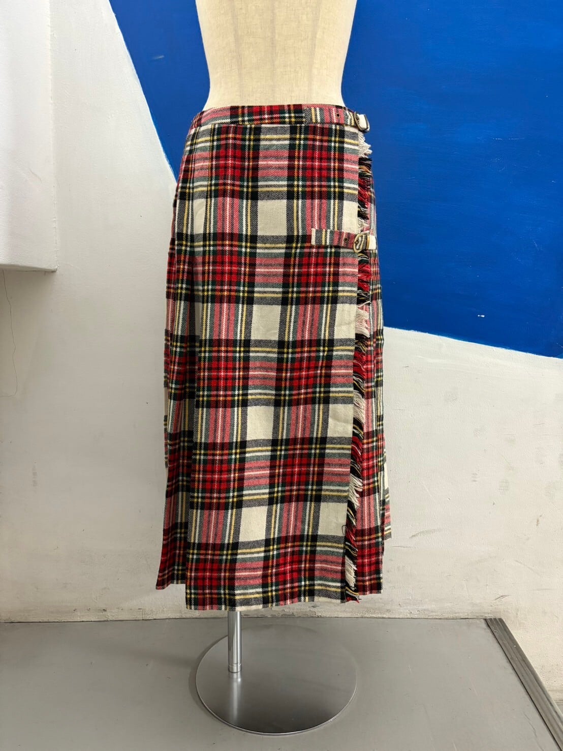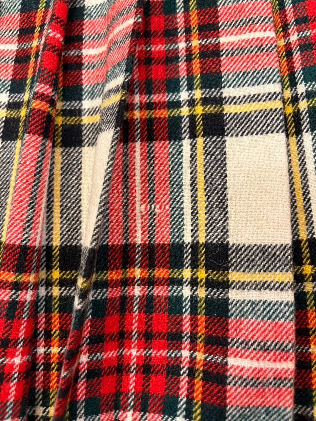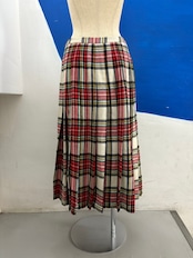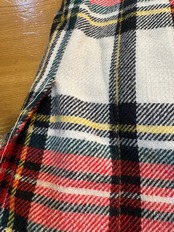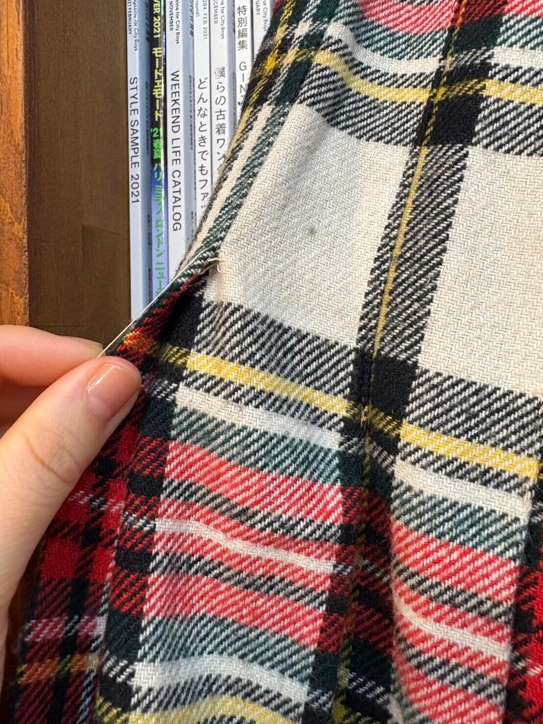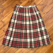 白ベースで赤グリーンのチェックがとてもかわいいプリーツスカートです。裏地、ポケットなし。