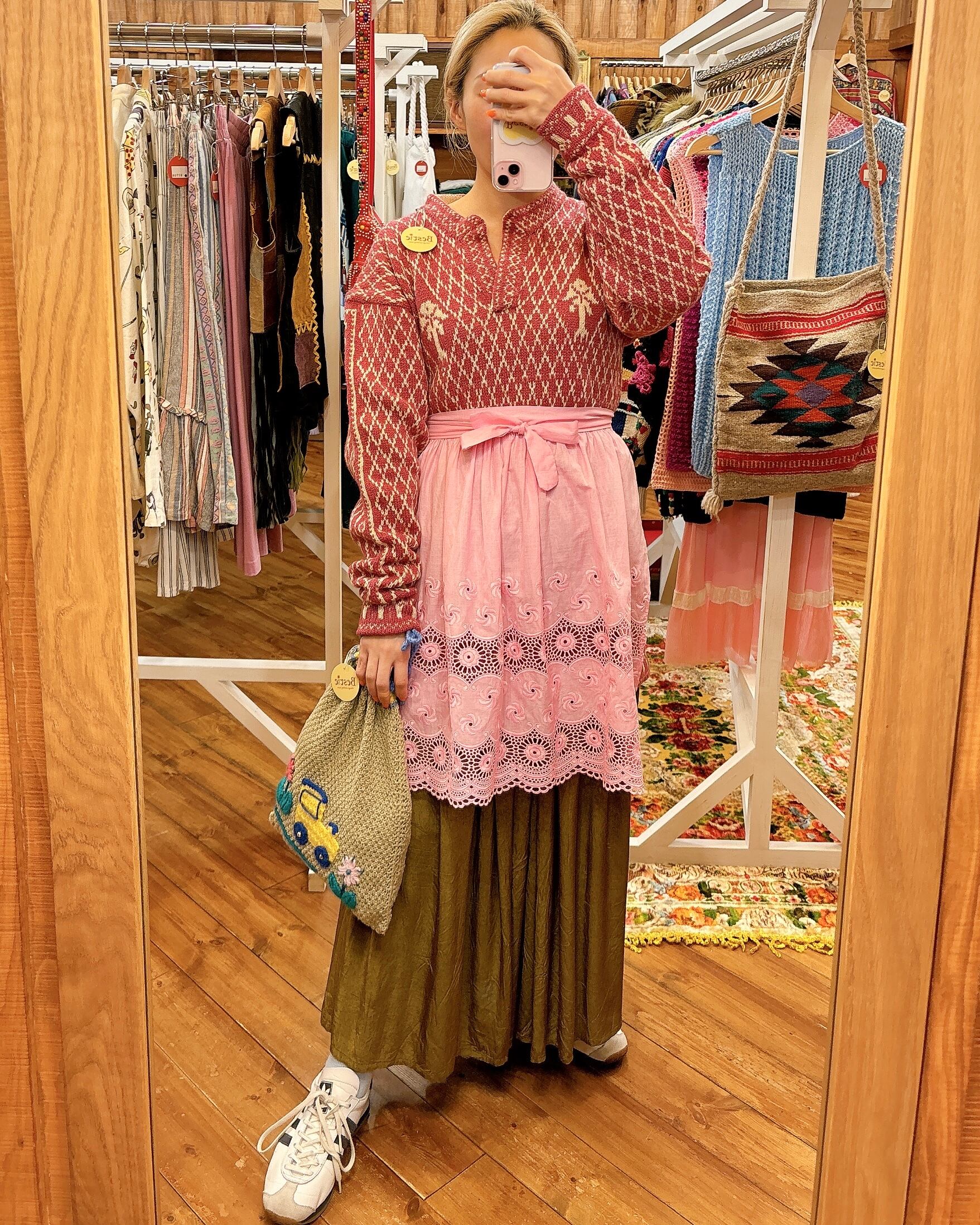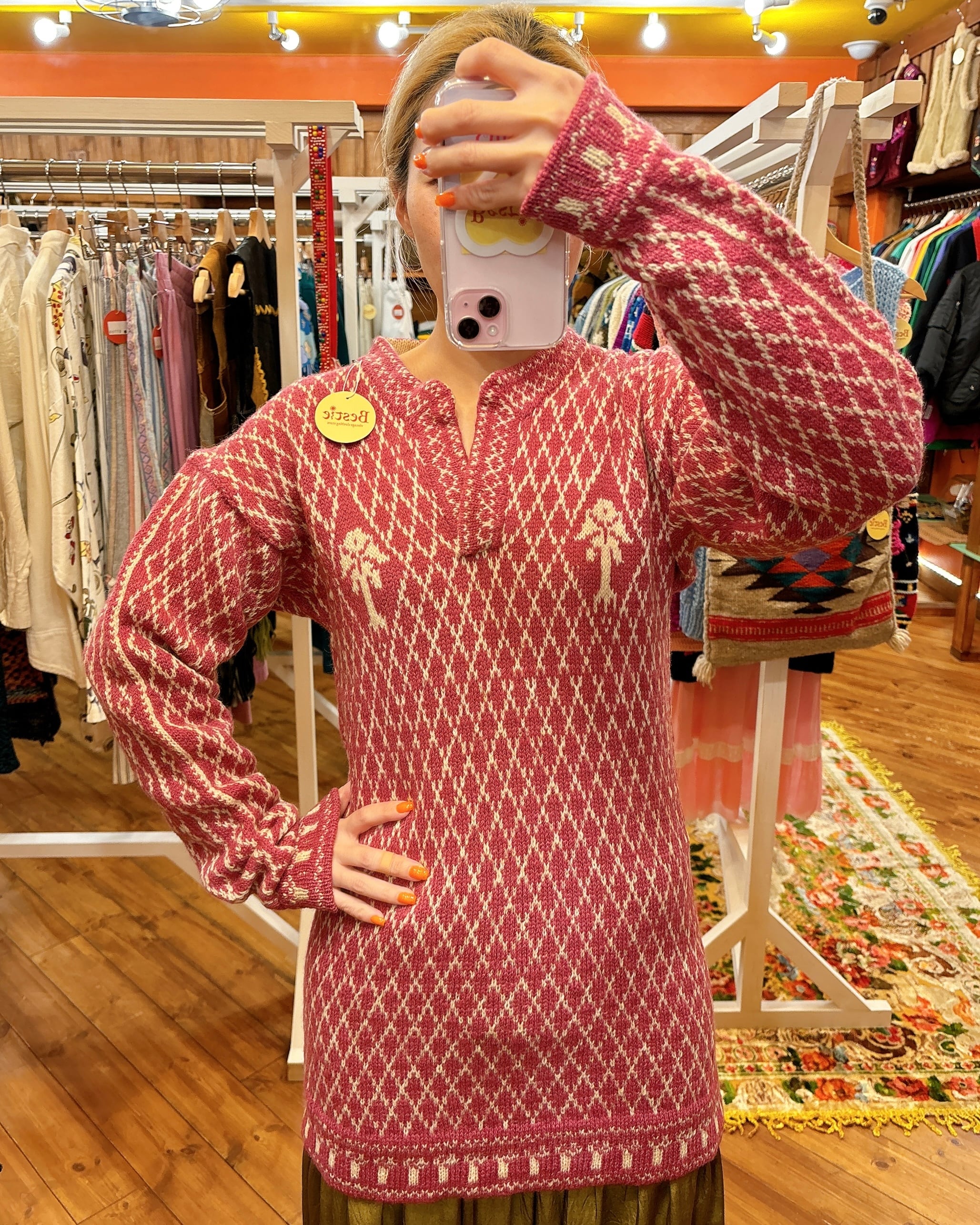 L/S Vネック ジャガード ニット チュニック プルオーバー セーター