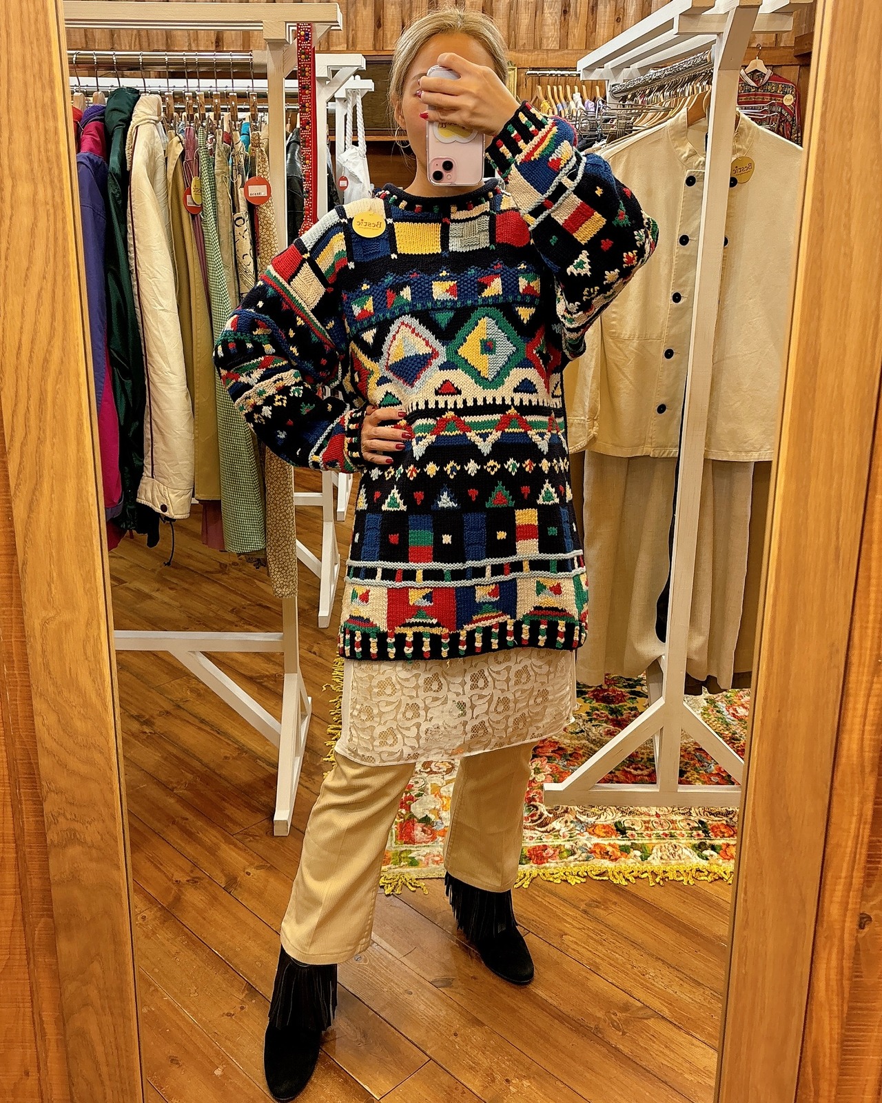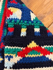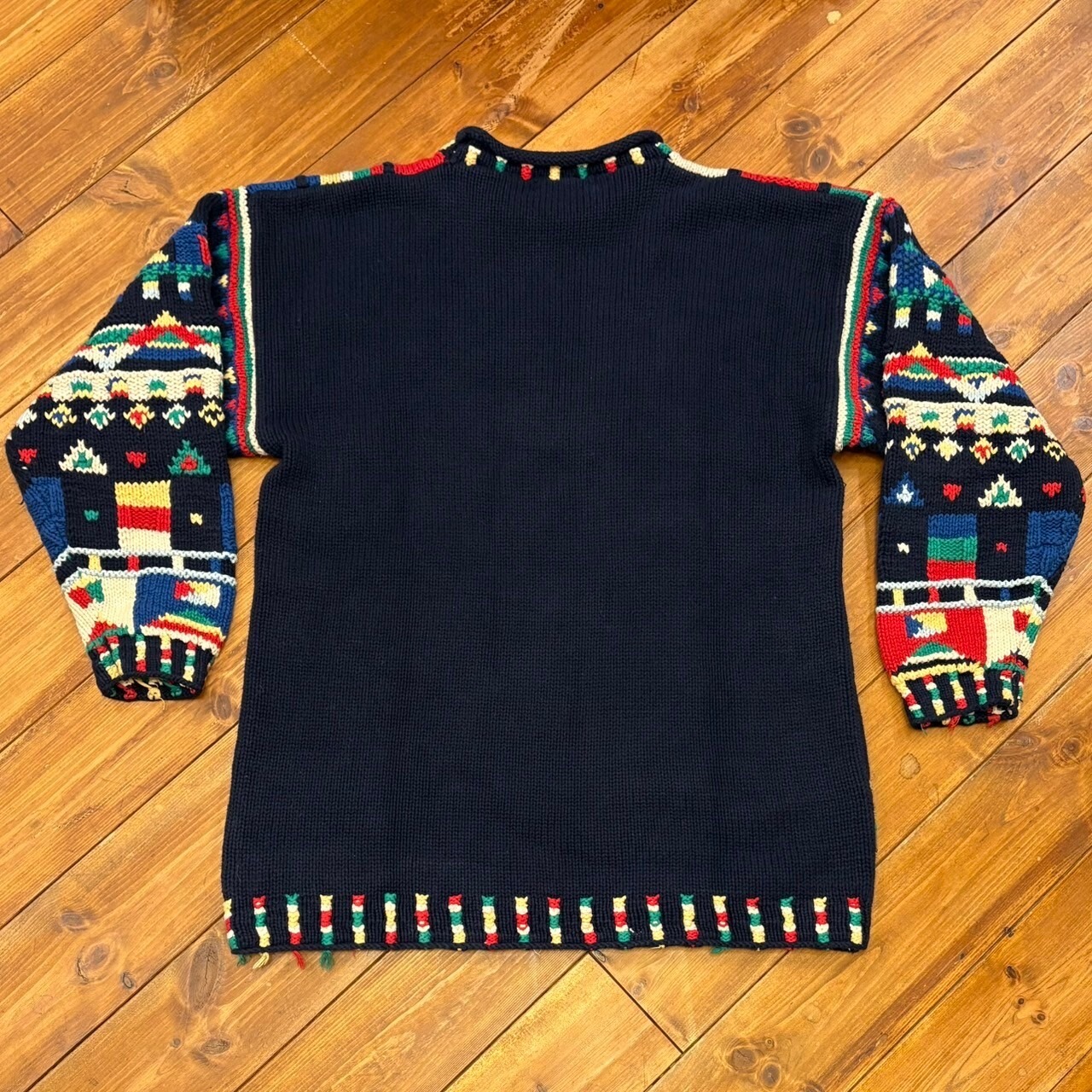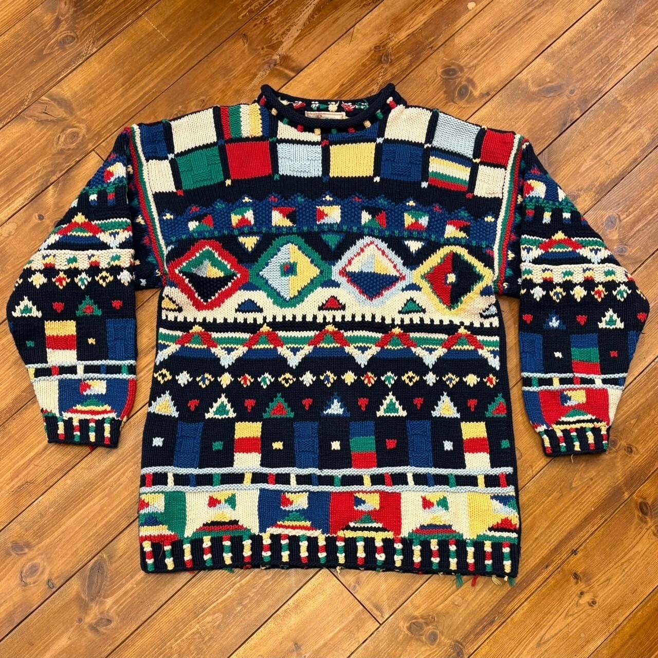 さまざまな色柄が一面にデザインされたすごくかわいいコットンニットのプルオーバーです。