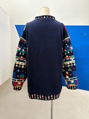 ※ほつれではないですが、柄/デザインニット特有の糸の飛び出し箇所あり。コットンニットの風合いとしての毛羽立ち感あり。袖に小さな汚れ箇所あり。