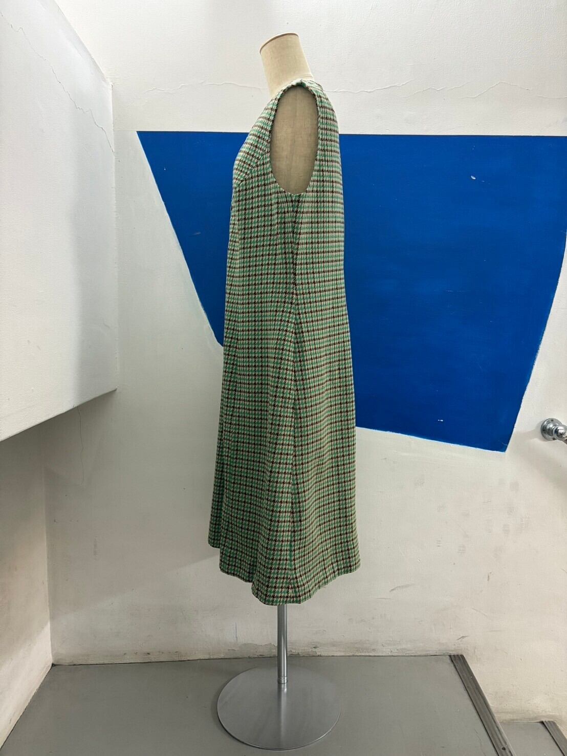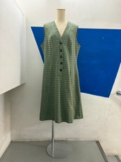 フロントボタン、プルオーバーで着脱するタイプのノースリーブワンピースです。レトロなカラーの千鳥格子柄!!かわいいです。