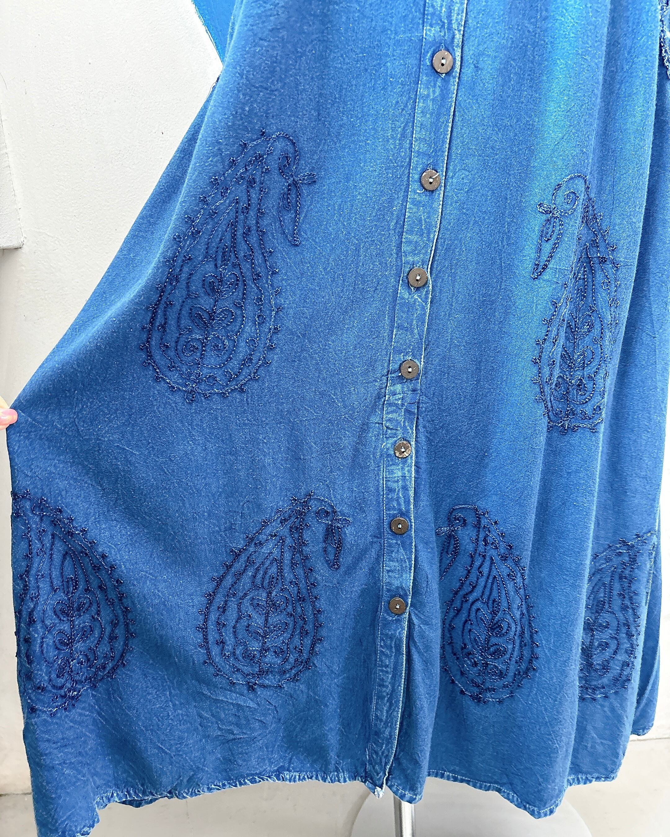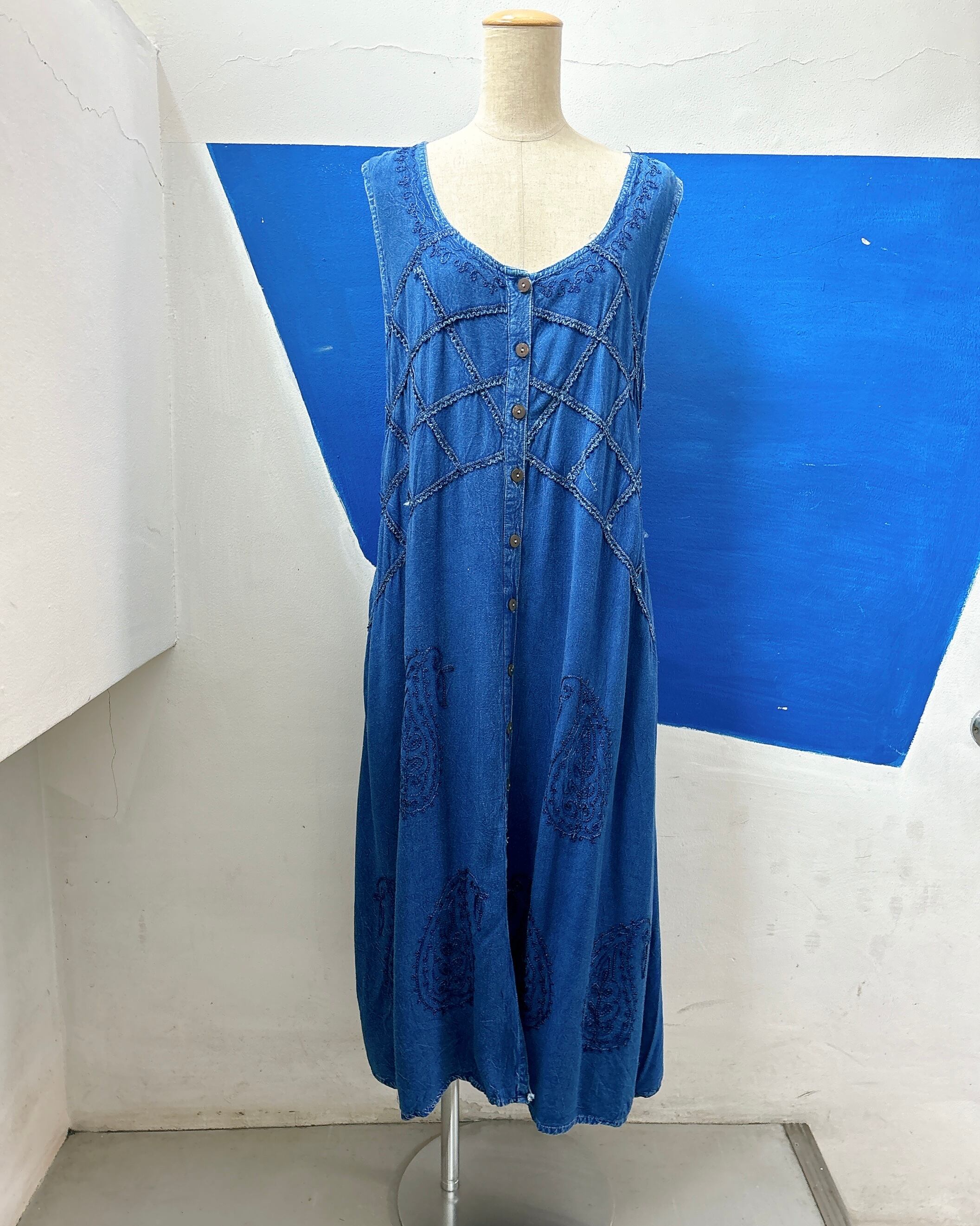 N/S エスニック 刺繍 フロントボタン 後ろリボン レーヨン ワンピース