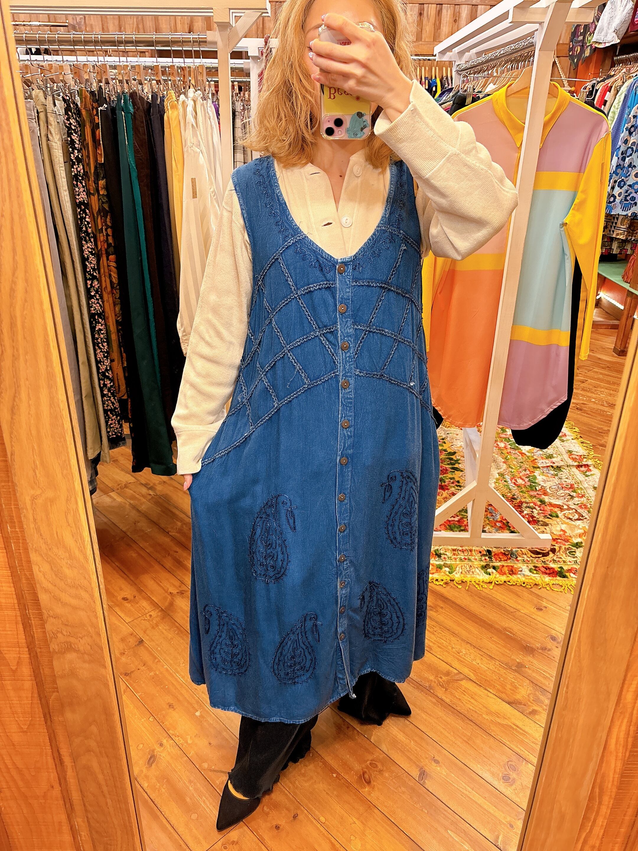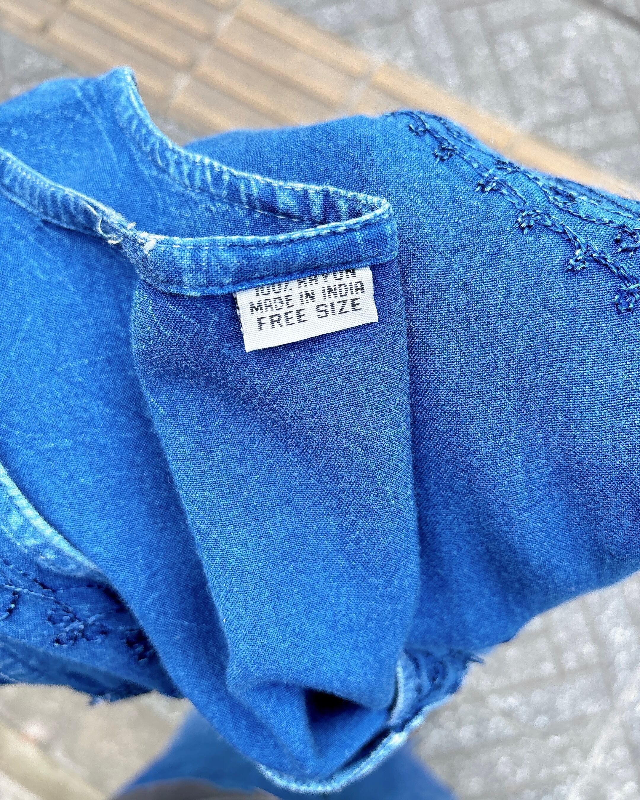 写真ですとライトオンスのデニムワンピに見えますがインドレーヨンです。なめらかな肌触りで春夏は一枚で、秋冬はニットとと合わせて通年お楽しみになれるデザインです。