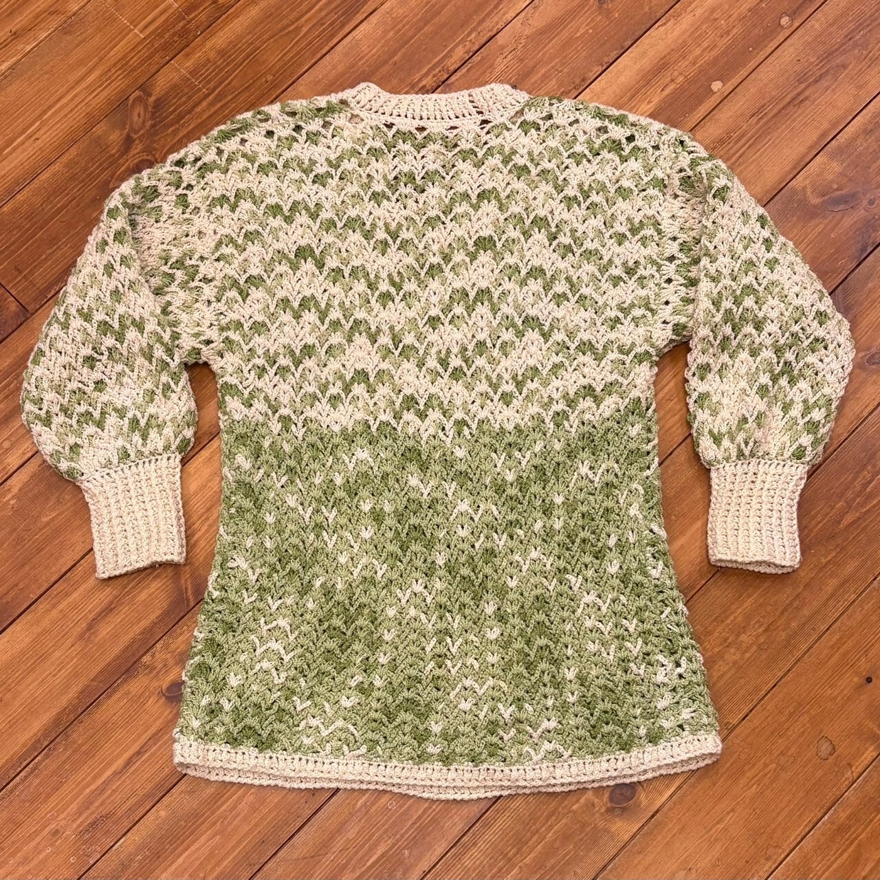 写真だとほぼ分からないのですが、ネットを重ね合わせたような立体的な編み目がかわいいです。