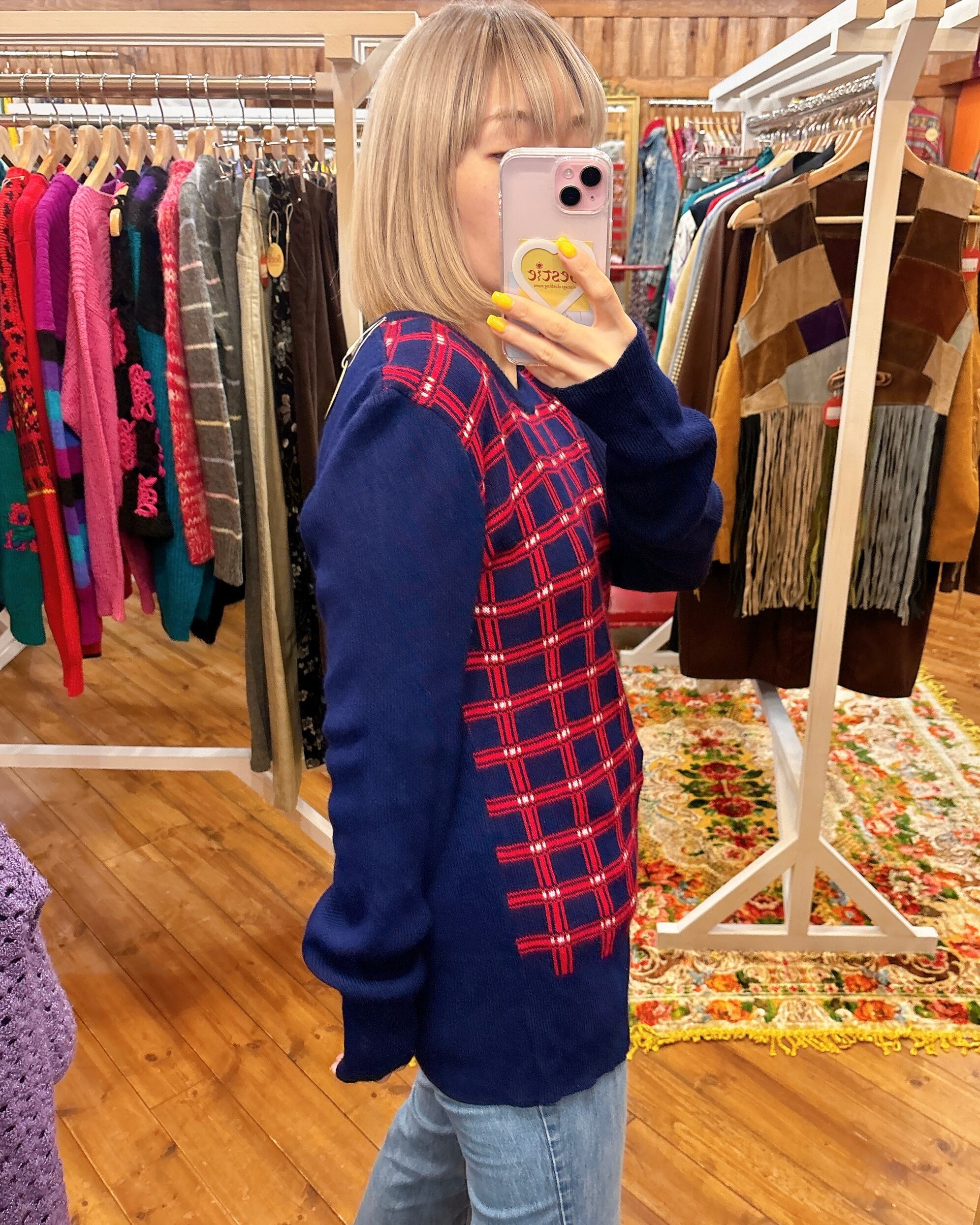 L/S チェック柄 格子柄 ニット プルオーバー トップス