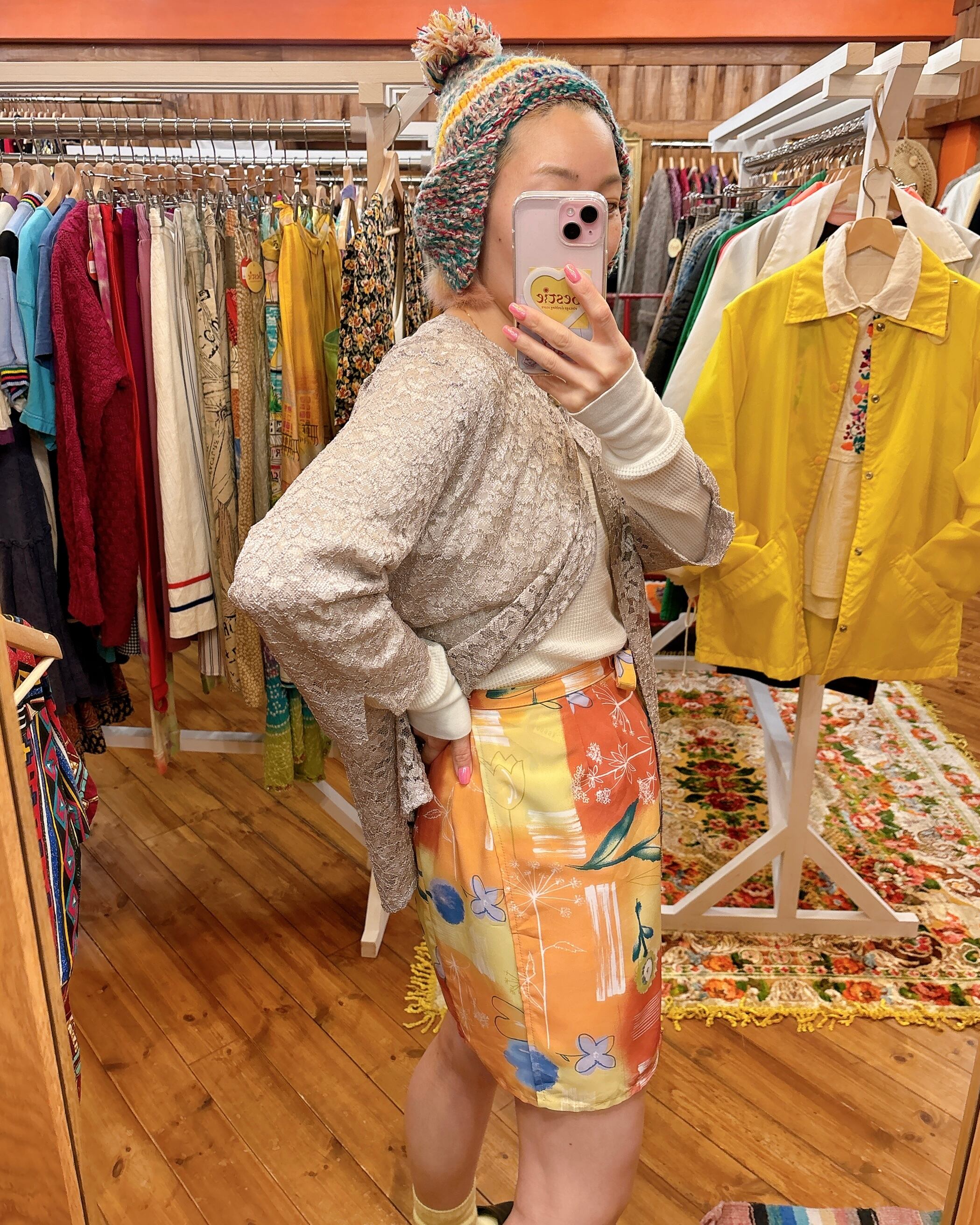 ラップスカートは基本ある程度サイズフリーの認識でご紹介しています。