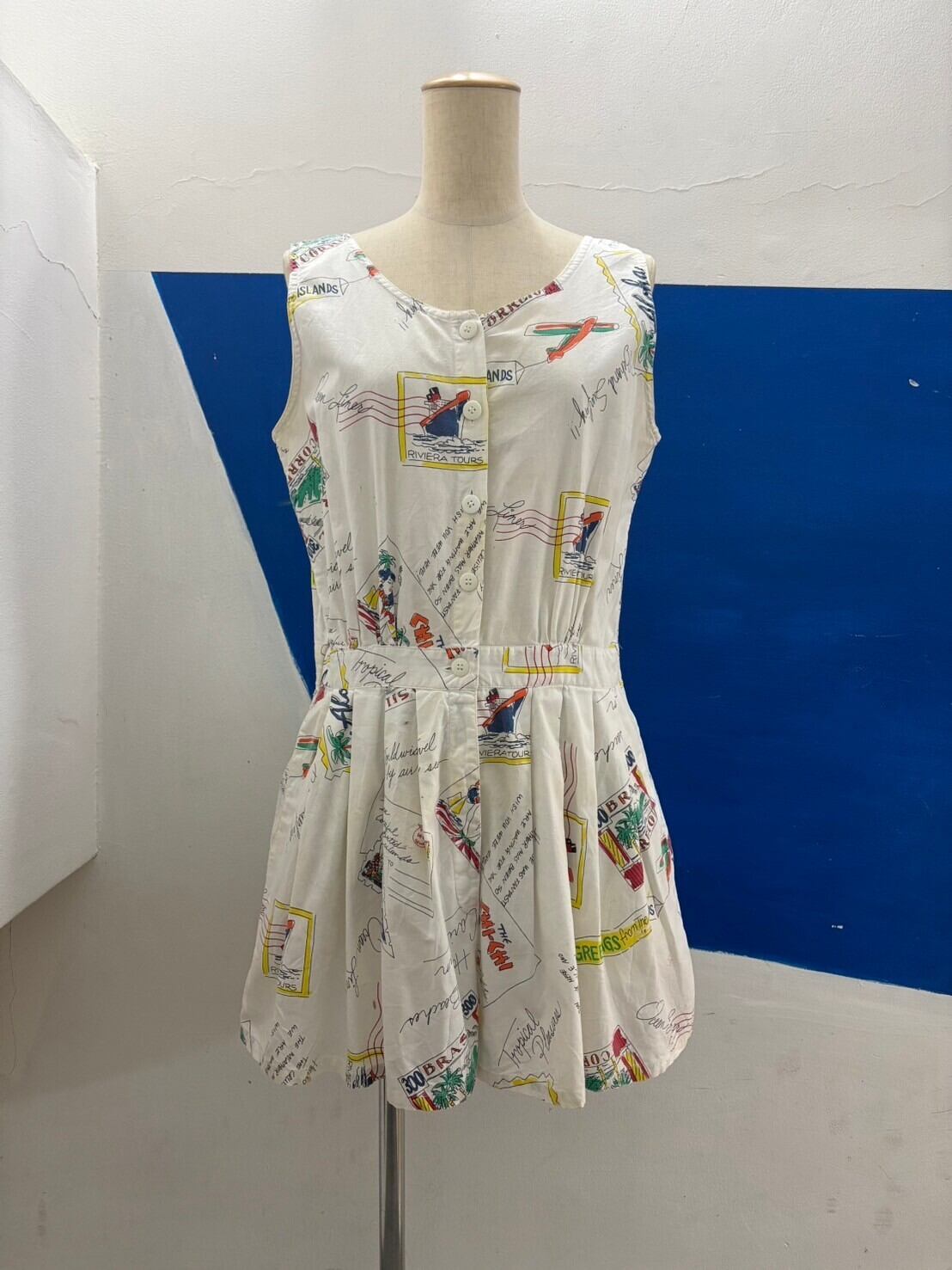 N/S 総柄 イラストプリント フロントボタンジャンプスーツ