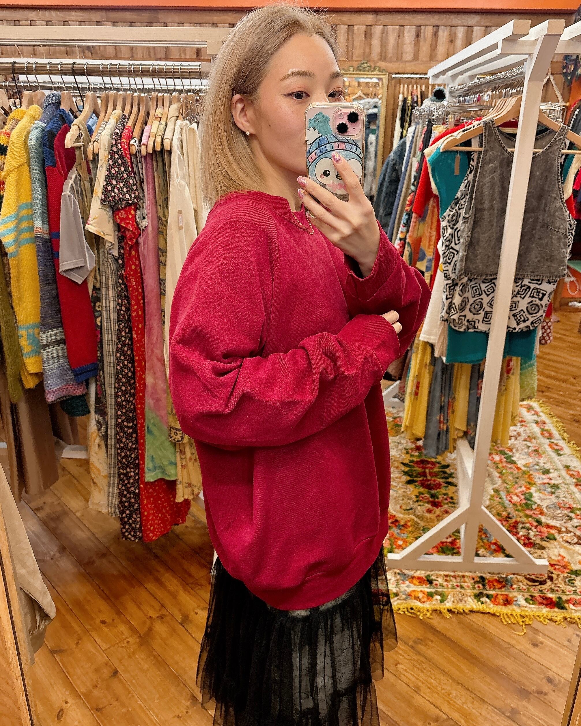 シンプルで大きめサイズ、コットンポリ50/50のふんわりした生地が気持ちいいクルーネックスウェットシャツです。