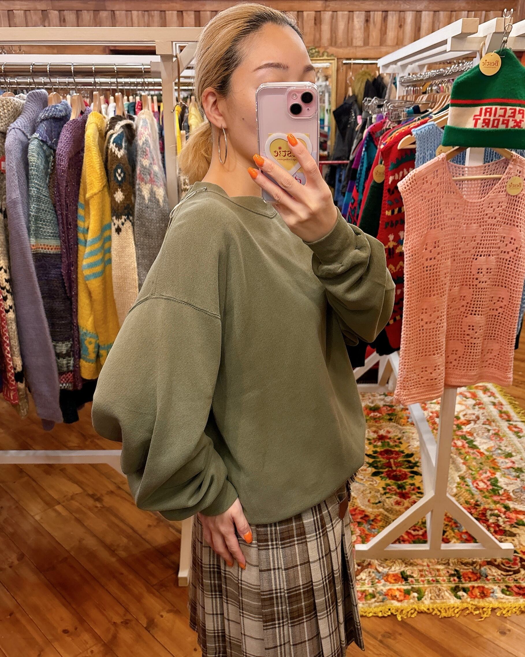 80-90's SOFFE L/S 無地 クルーネック スウェットシャツ(オリーブグリーン)